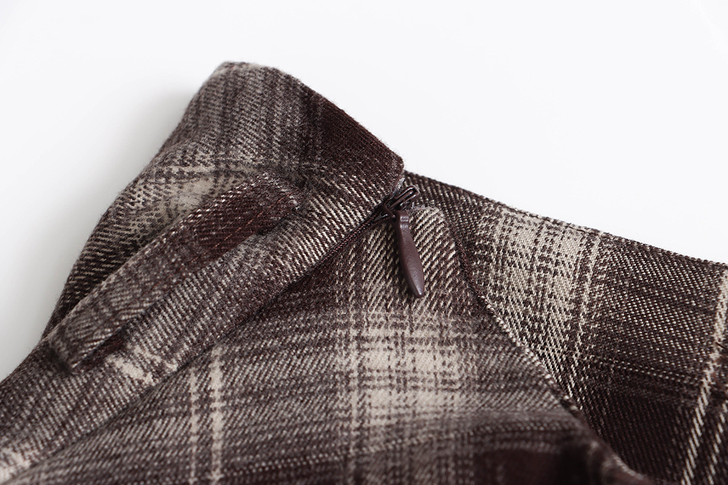 Retro British Tone Irregular Asymmetric Contrast Color Check High Waist A line Slimming Skirt