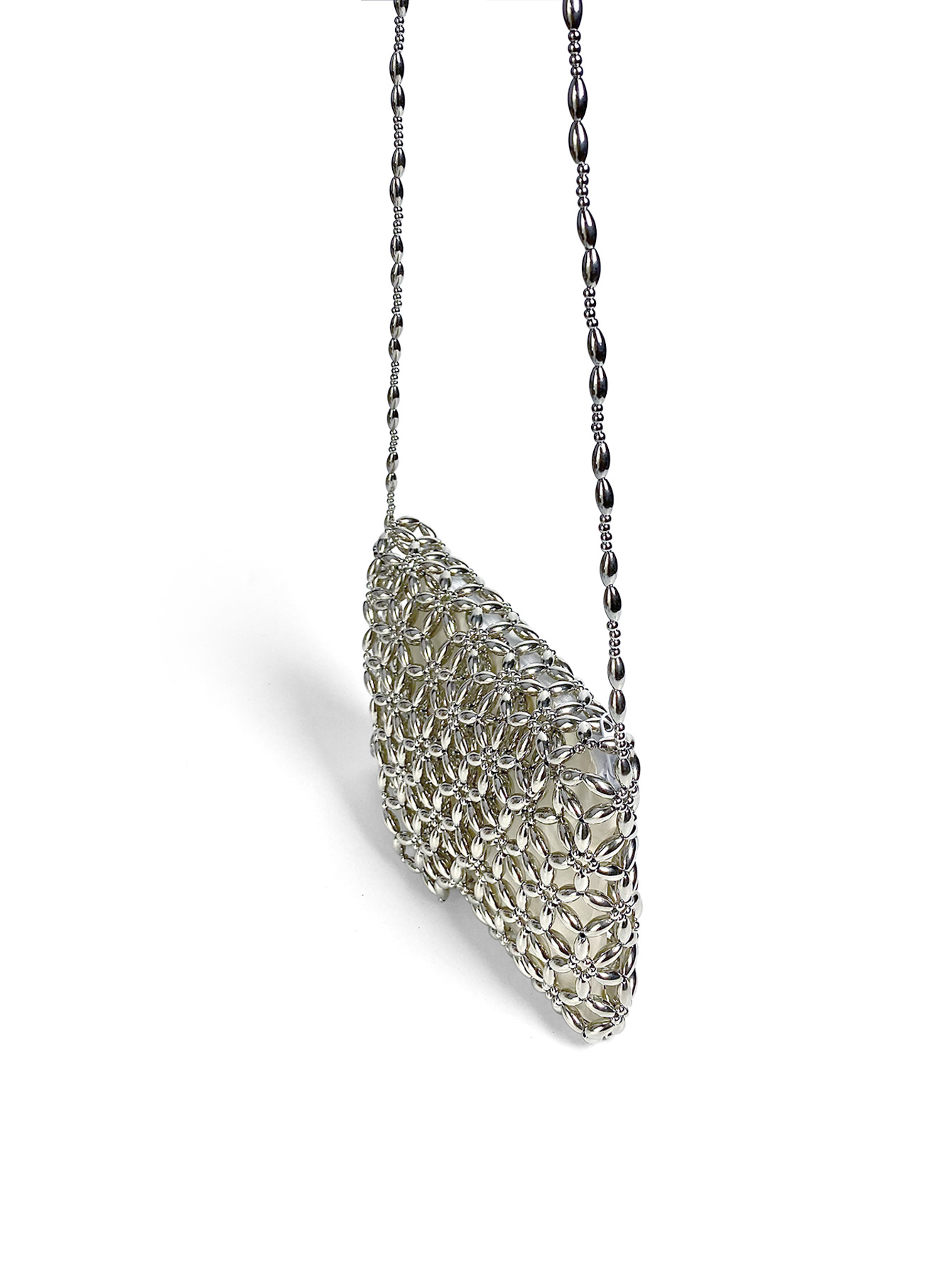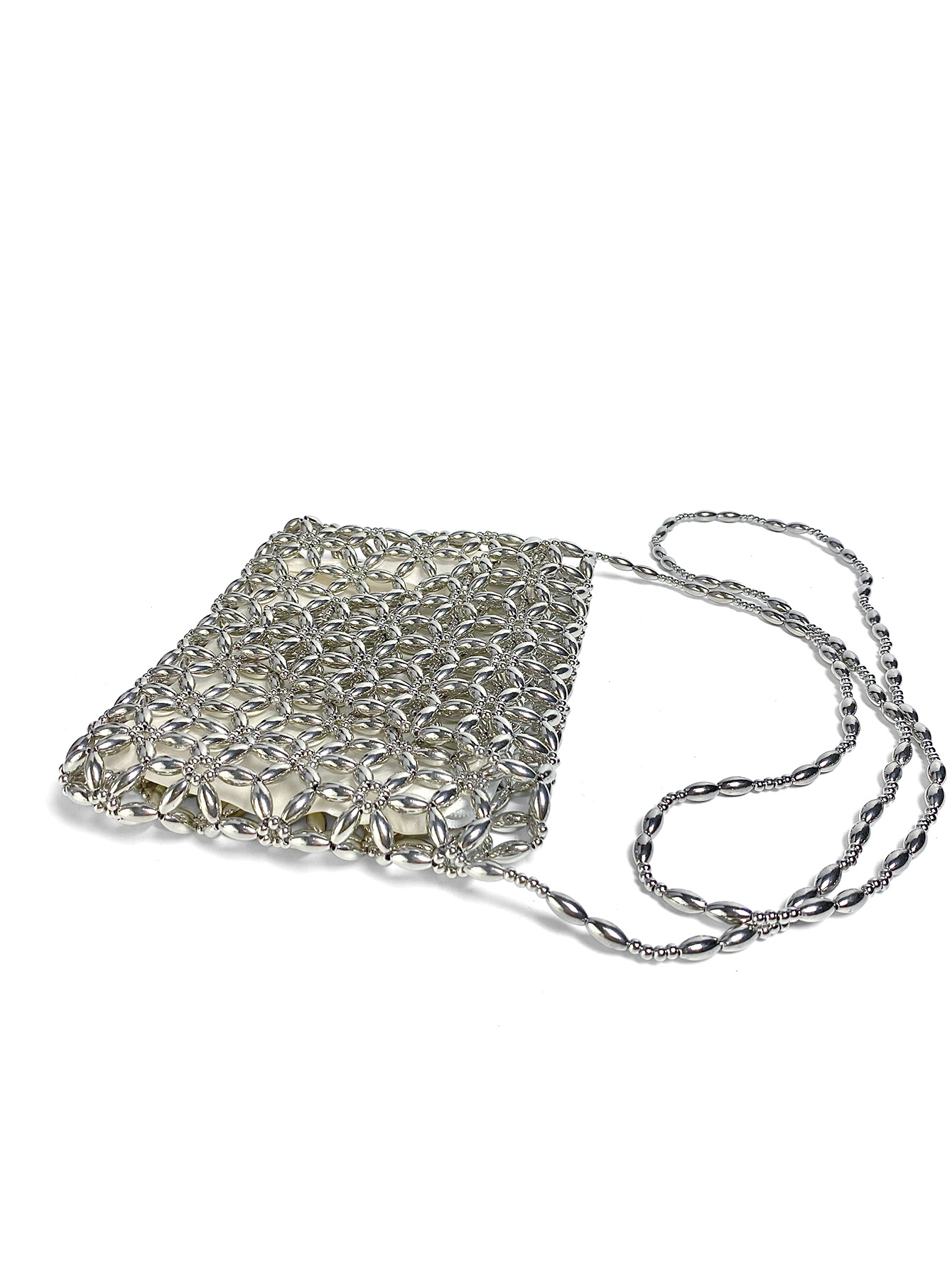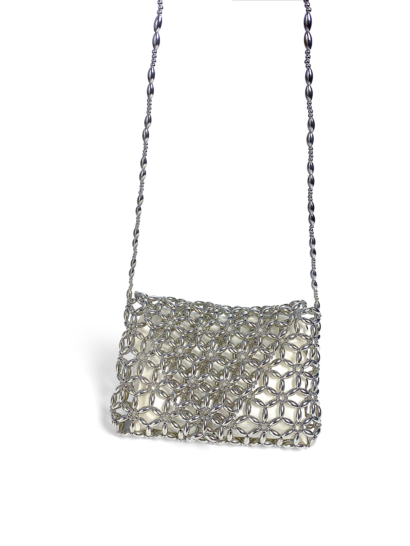 Retro Metal Silver Hand Woven Beads Small Square Bag Long Shoulder Strap Phone Crossbody Bag