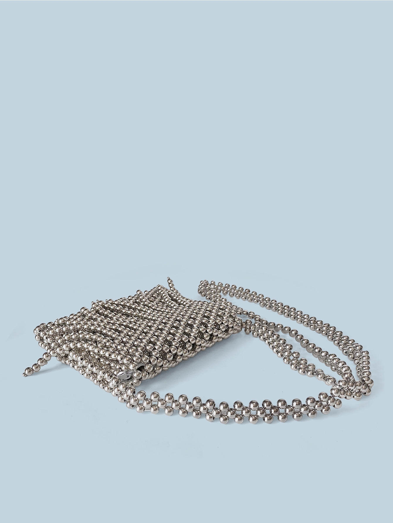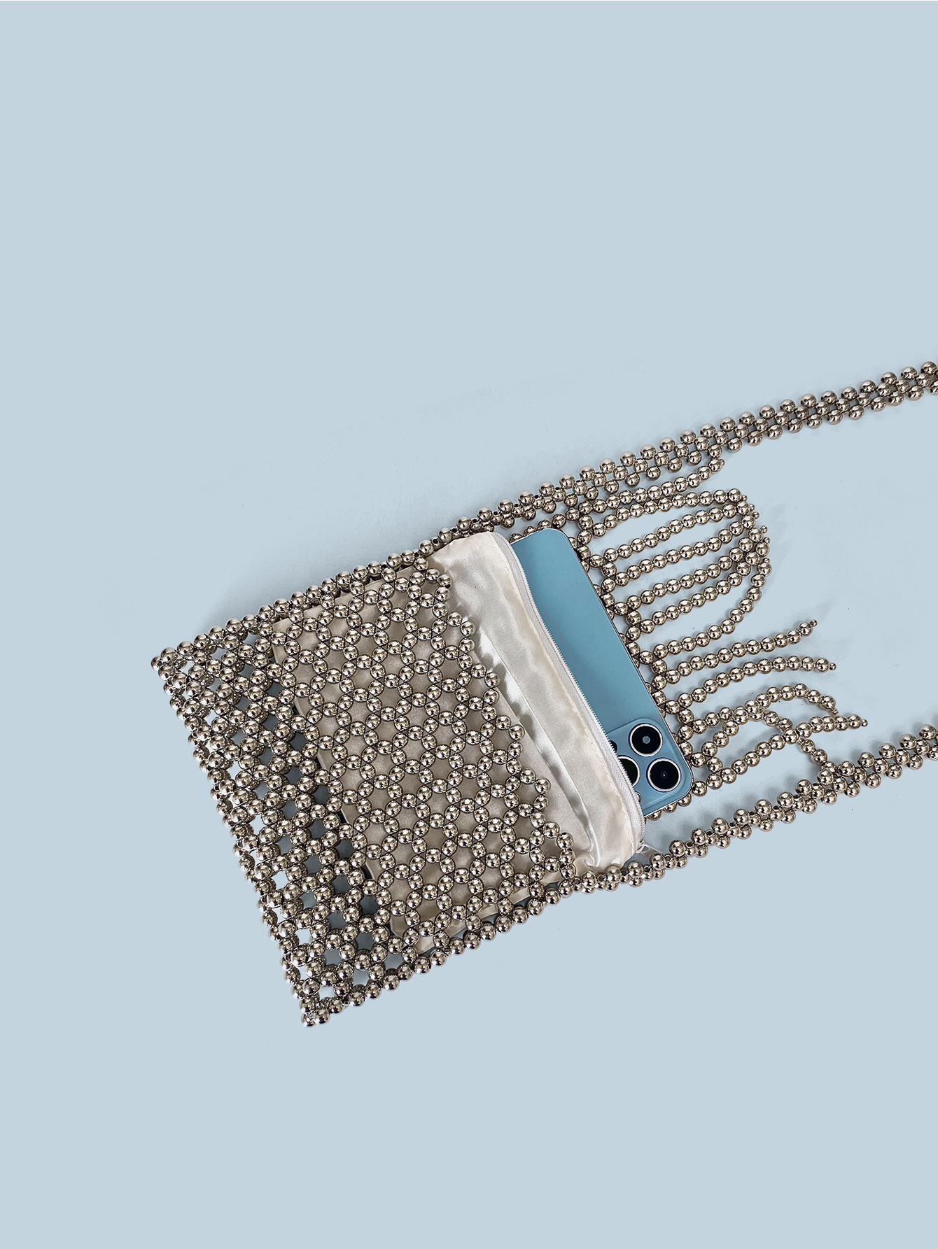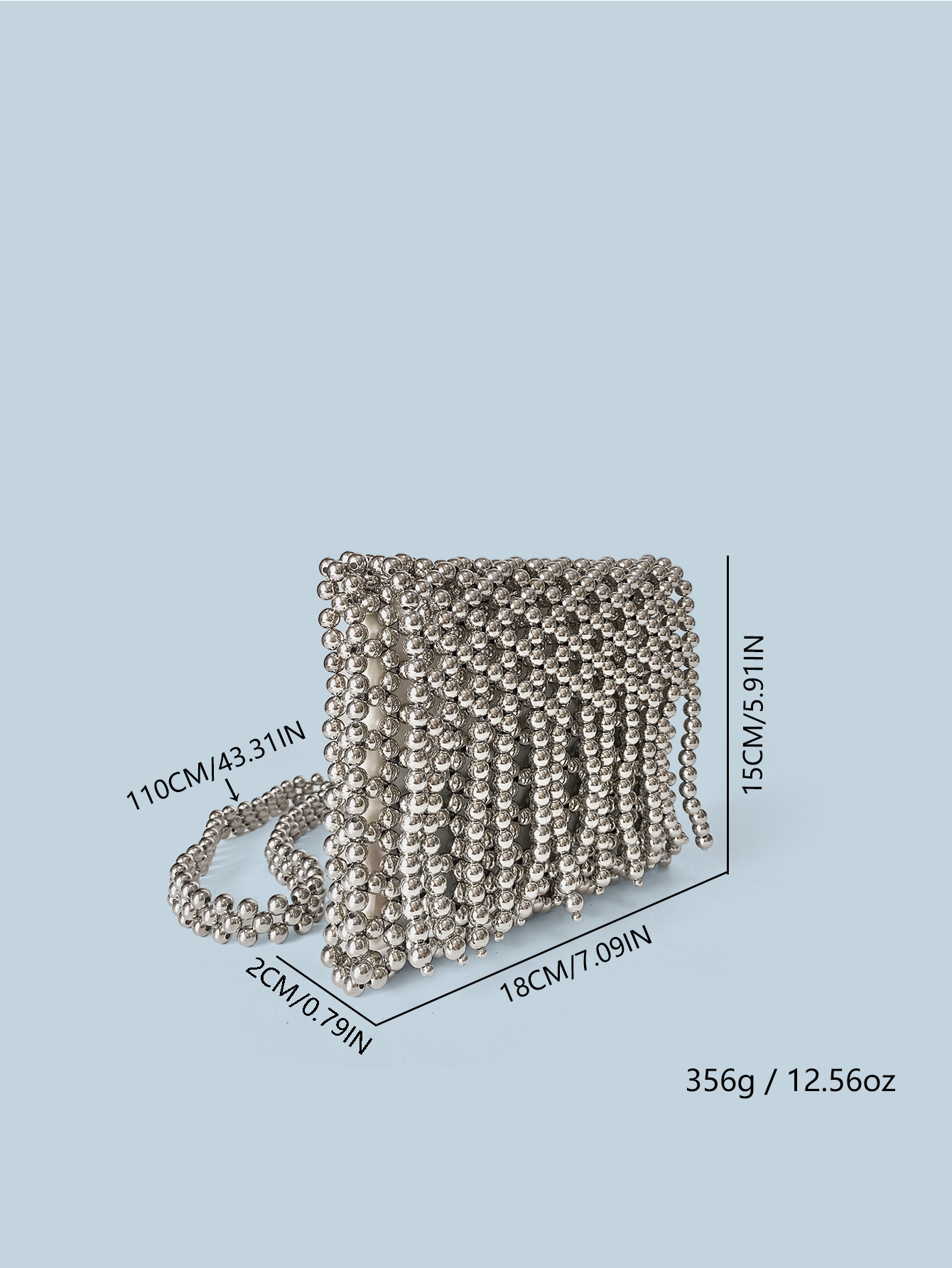 Retro Metallic Shiny Hand Woven Beads Small Square Bag Mobile Phone Bag Long Shoulder Strap Tassel Messenger Bag