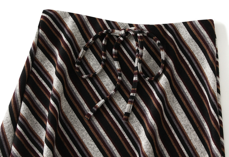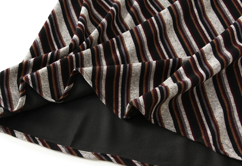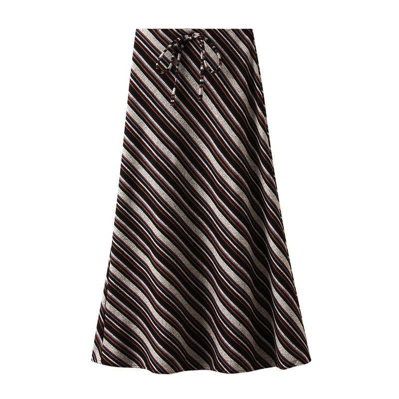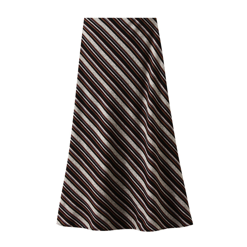 Retro Striped Skirt for Women Autumn High Waist Drape Long Skirt Sheath Fishtail Skirt