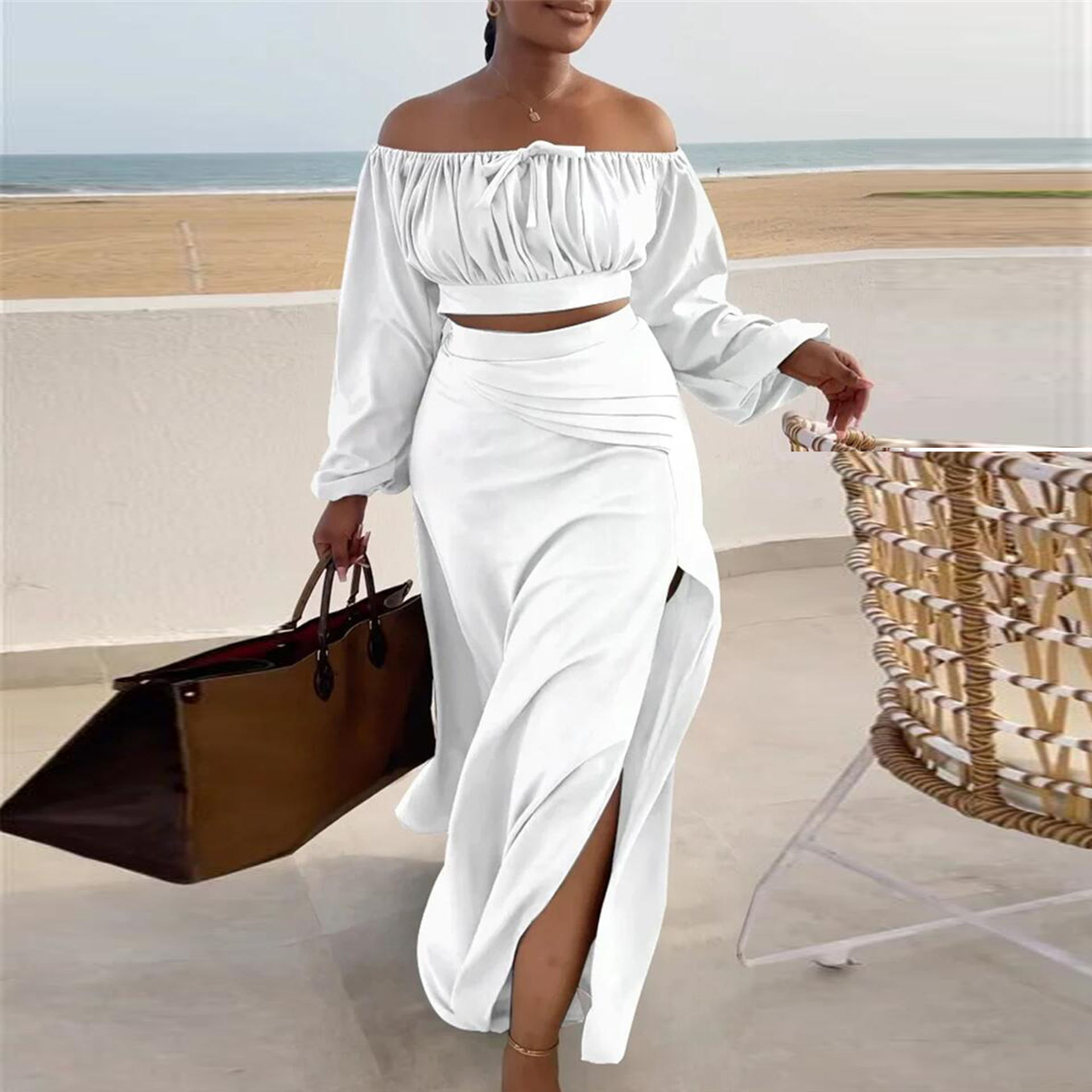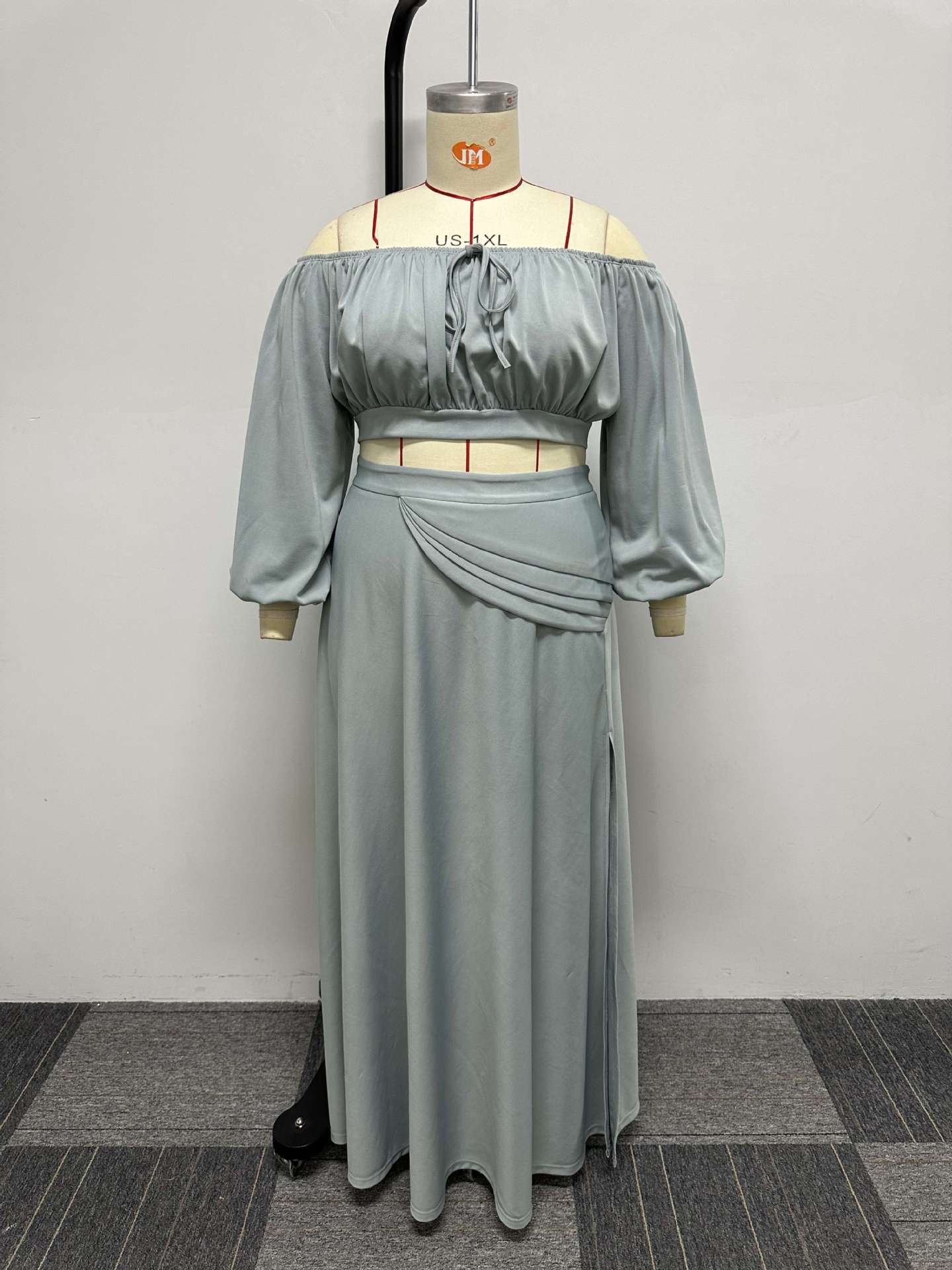Sexy Chest Wrapped Large Skirt Lantern Sleeve Suit Two Piece Set