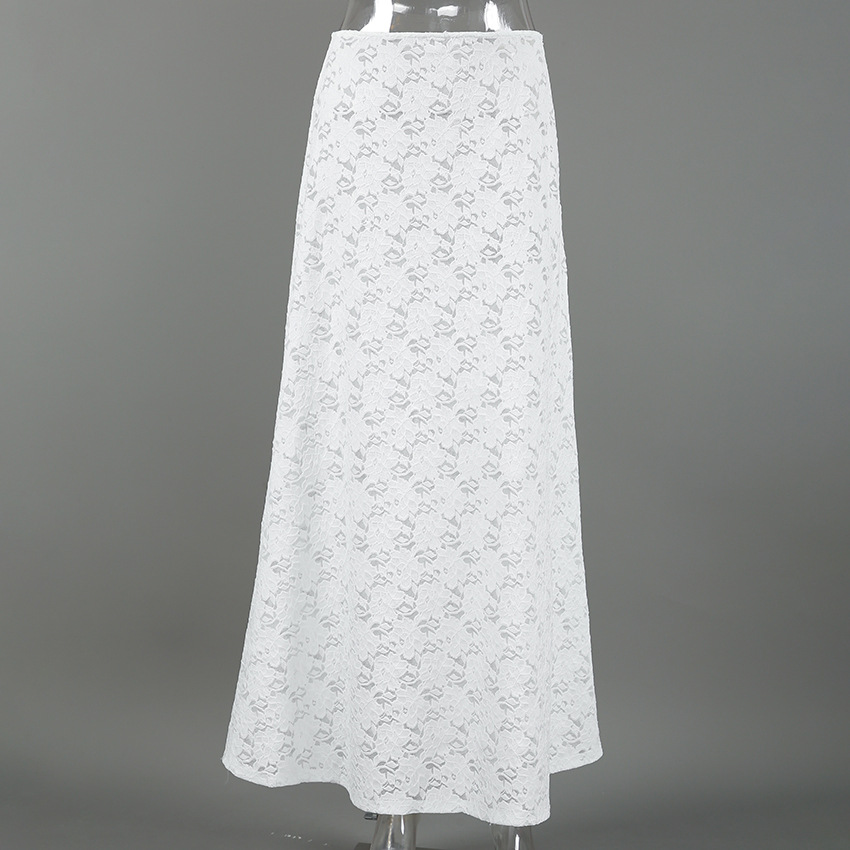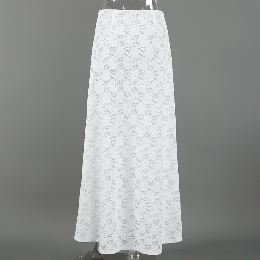 Sexy Design Lace Beach Casual Fishtail Skirt Autumn Winter Elegant White Ankle High Skirt Women