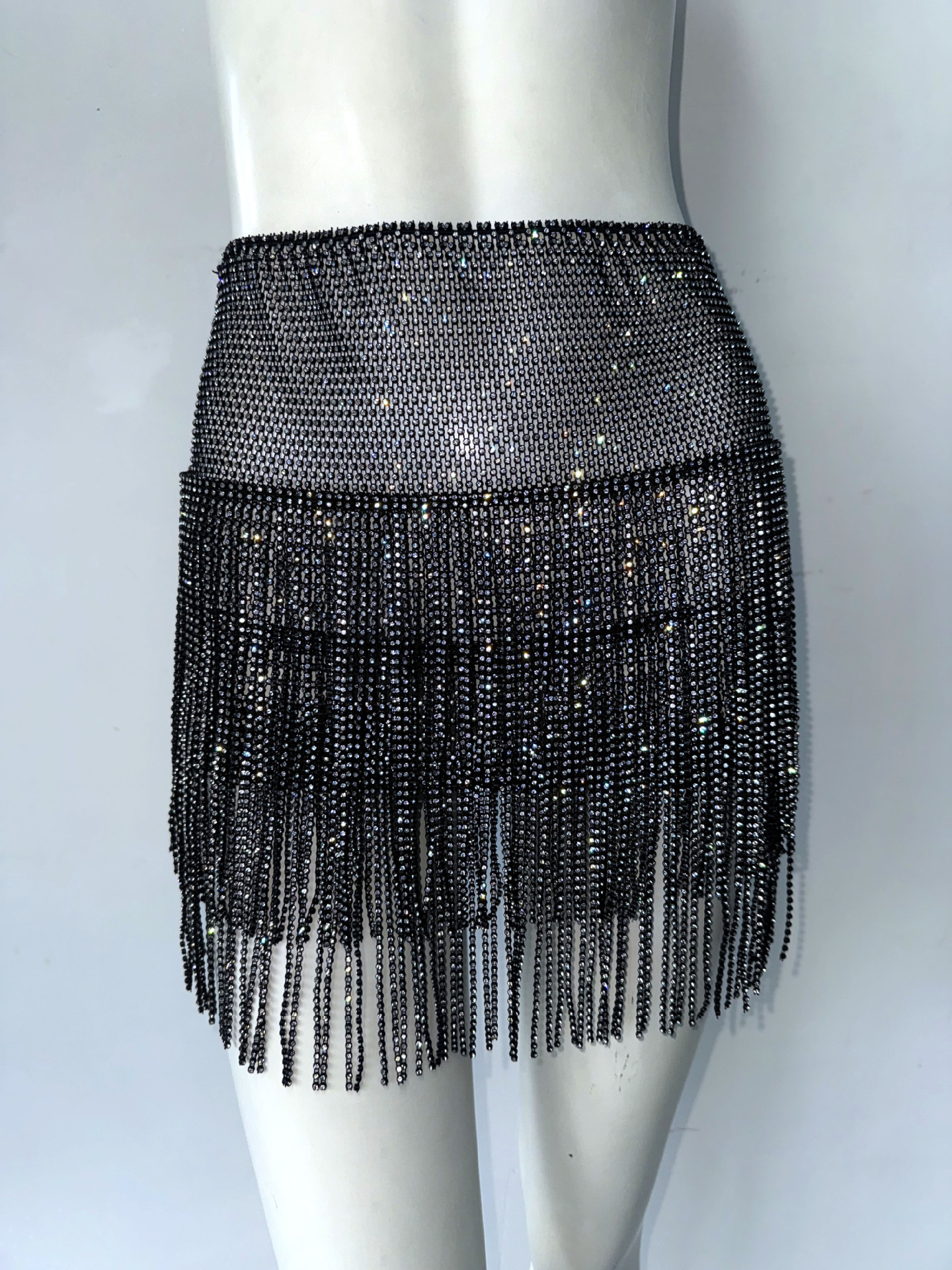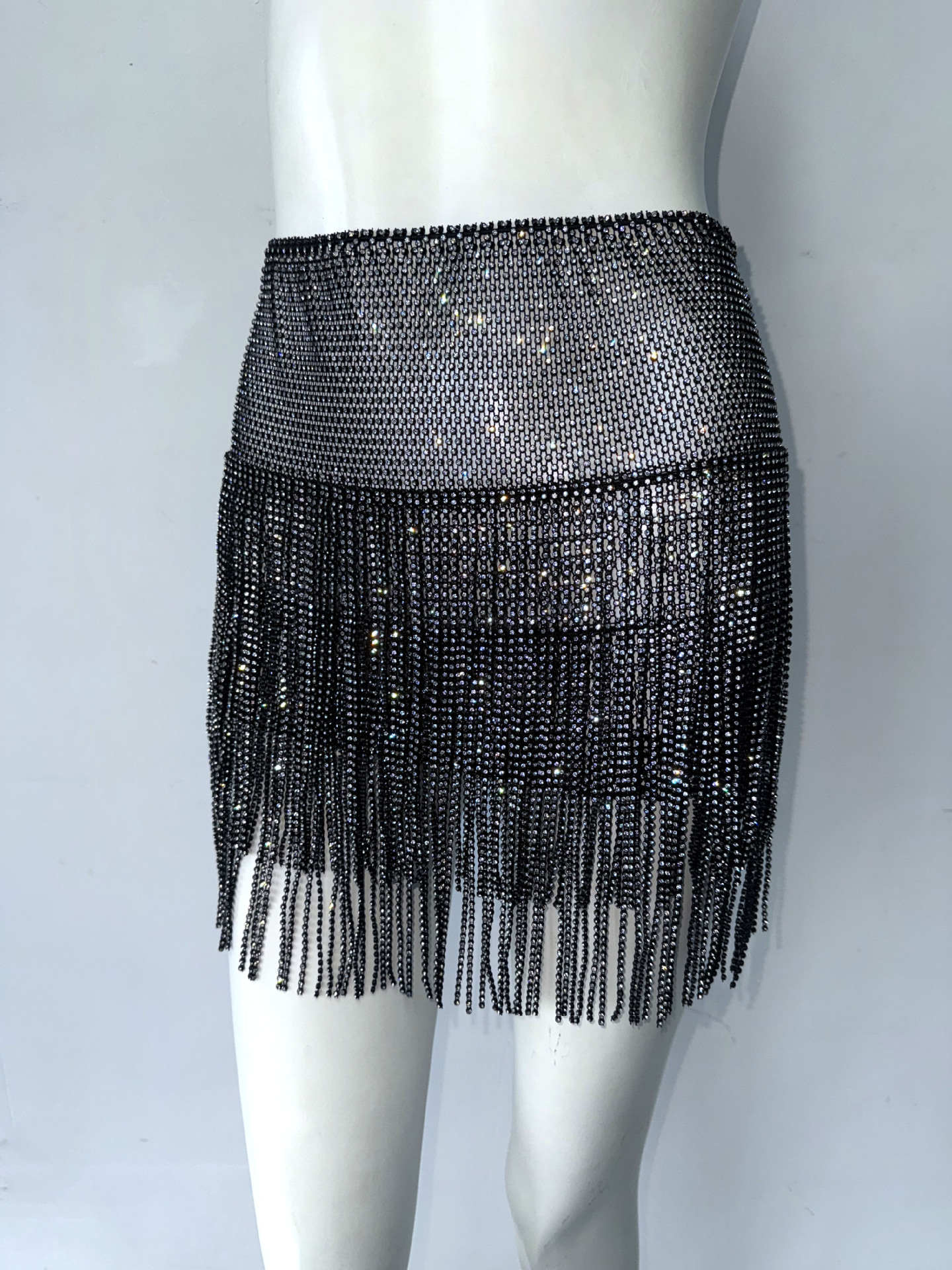 Sexy Rhinestones Skirt Sexy Tassel Dress Music Festival Party A line Skirt Fishnet Skirt Women