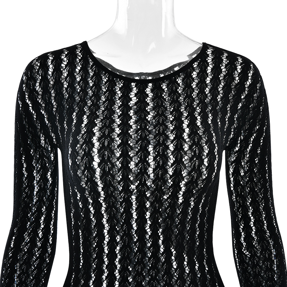 Sexy See through Summer Perspective Jumpsuit Seamless Striped Jacquard One Piece Long Sleeves One Piece Trousers