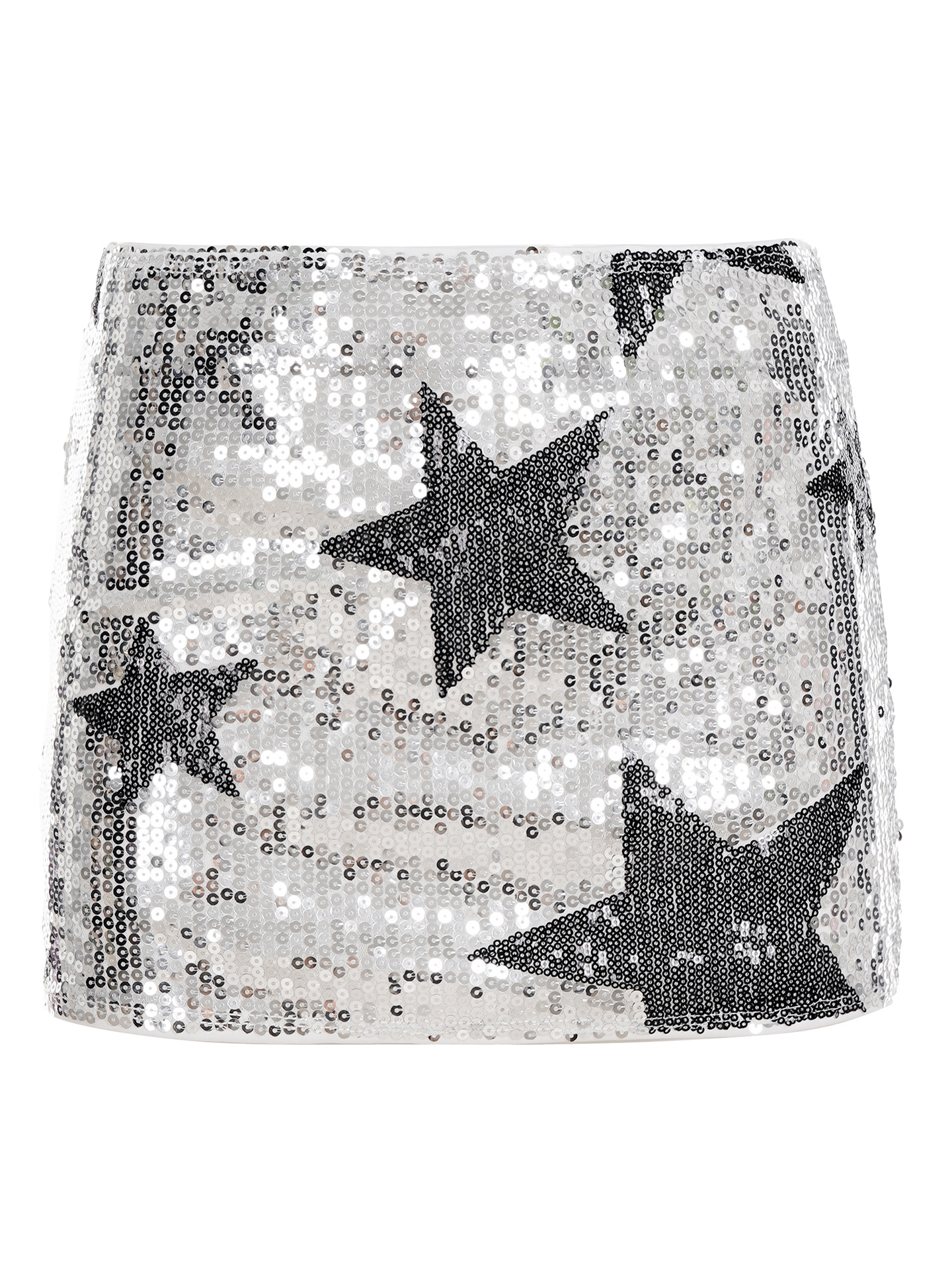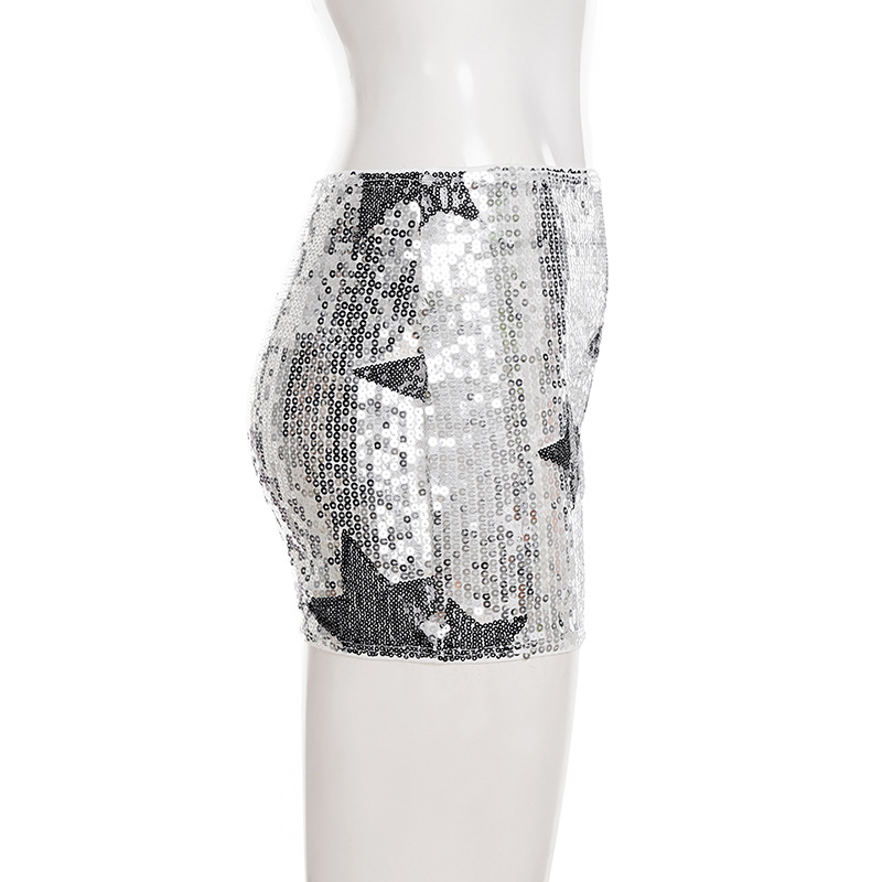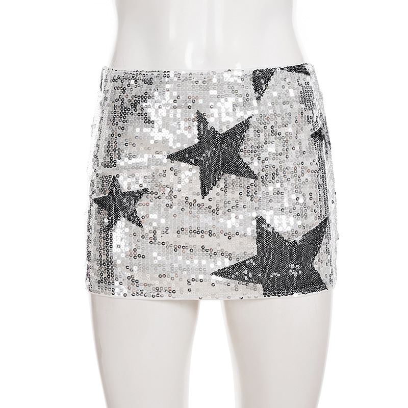 Sexy Sequined Five Pointed Star Short Skirt Women Low Waist Knitted Street Hip Skirt