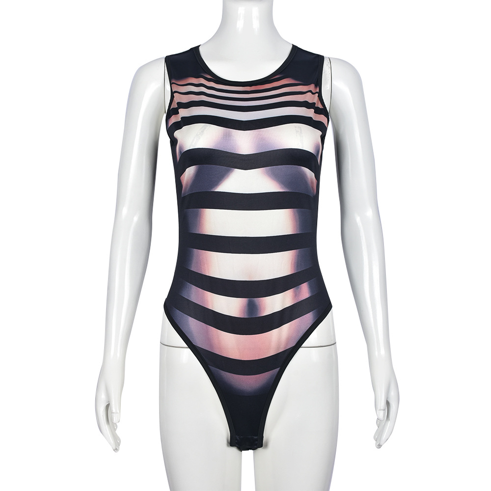 Sexy Sleeveless Printed High Elastic Jumpsuit Sexy Top