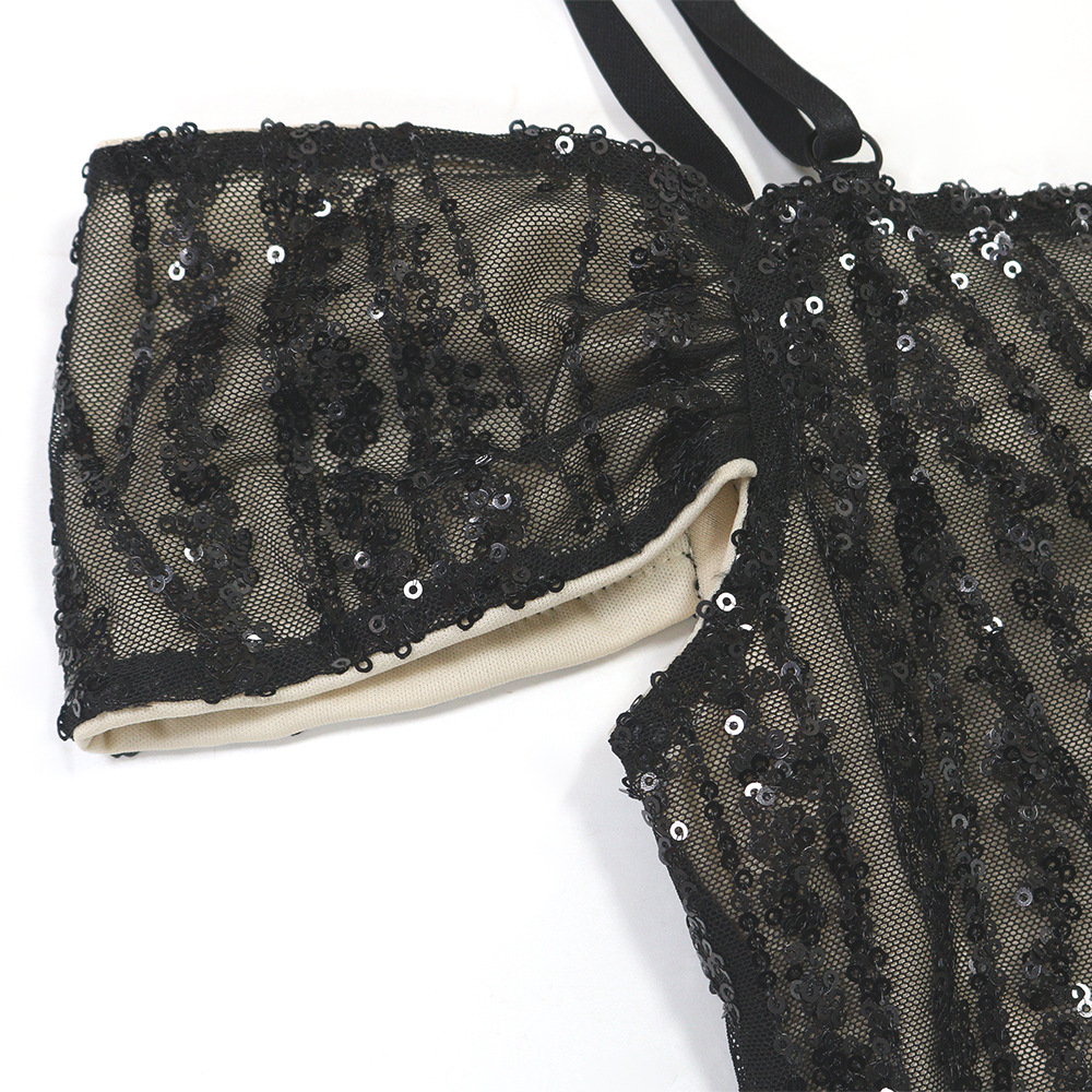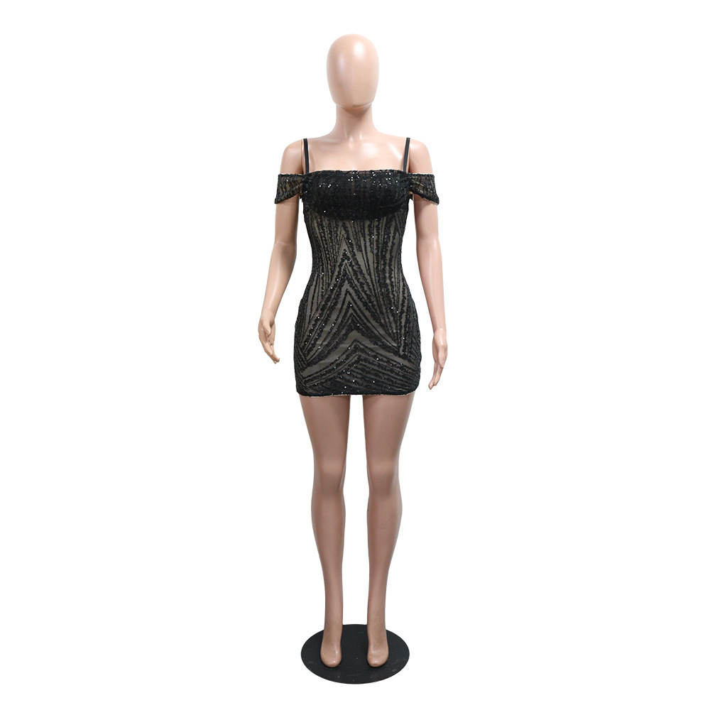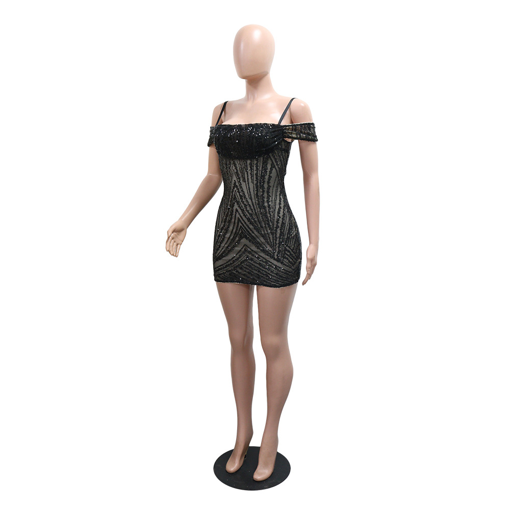 Sexy Suspenders Sequined Sheath Dress Short Slim Fit Skirt Women Clothing