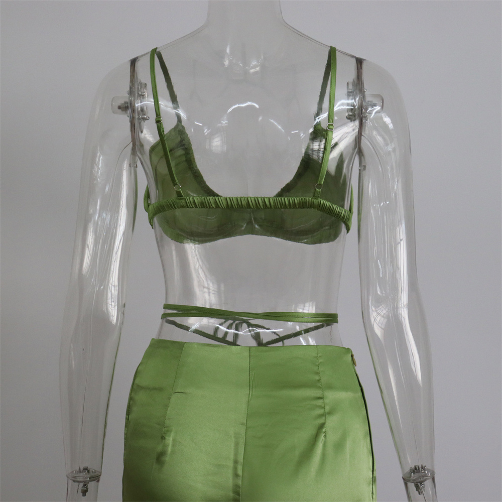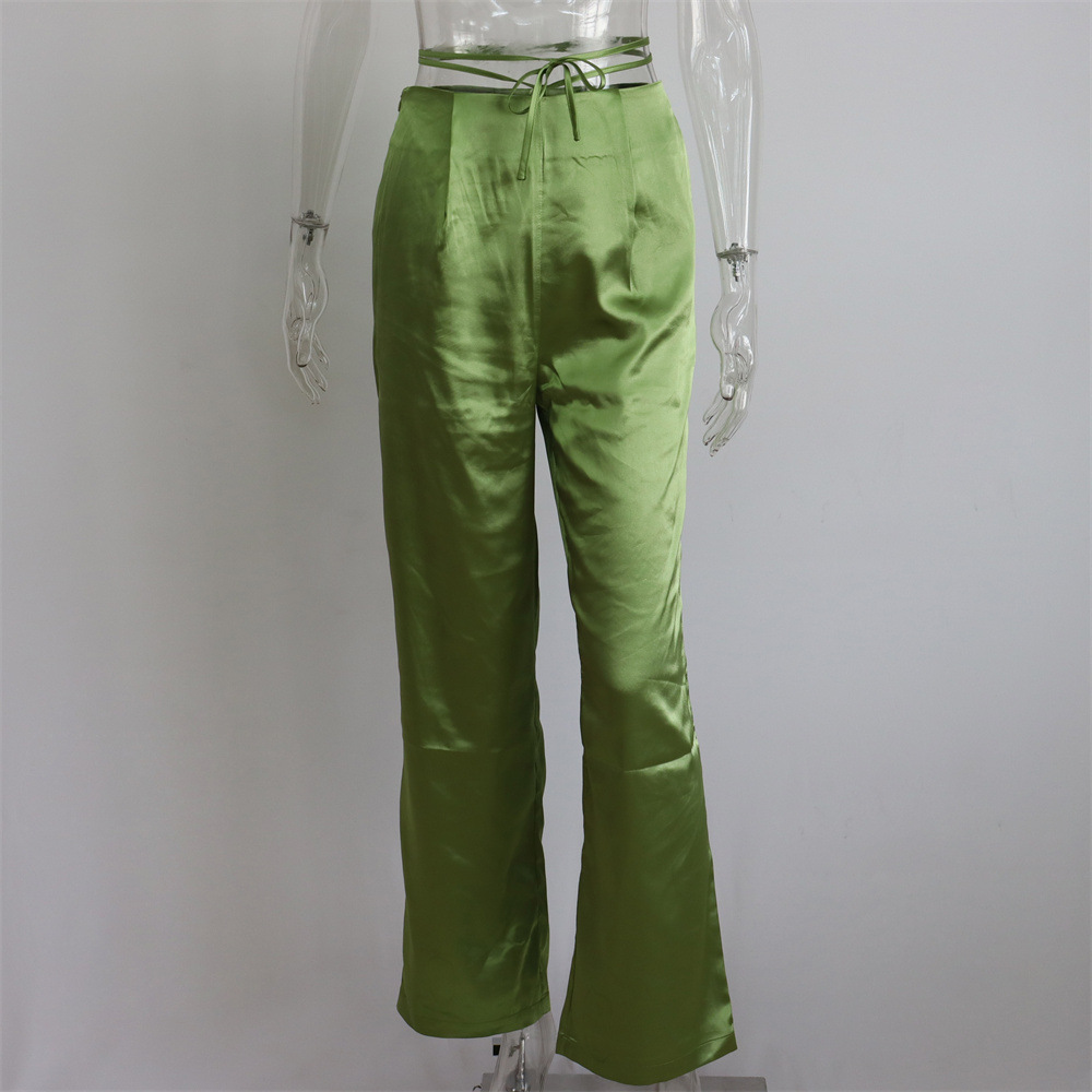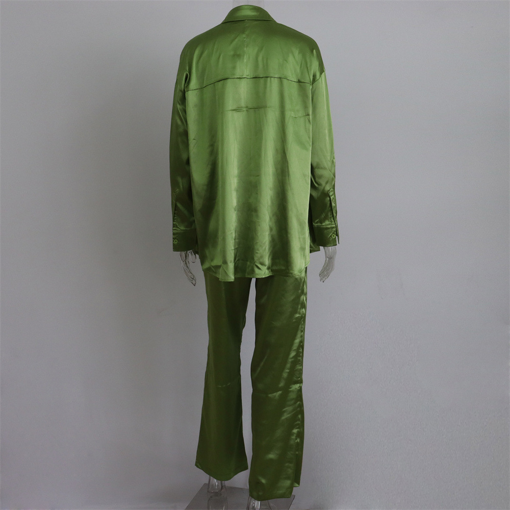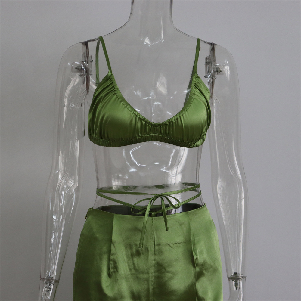 Sexy Women Wear Spring Summer Casual Vacation Three Piece Suit Satin Shirt Vest Straight Leg Pants Suit