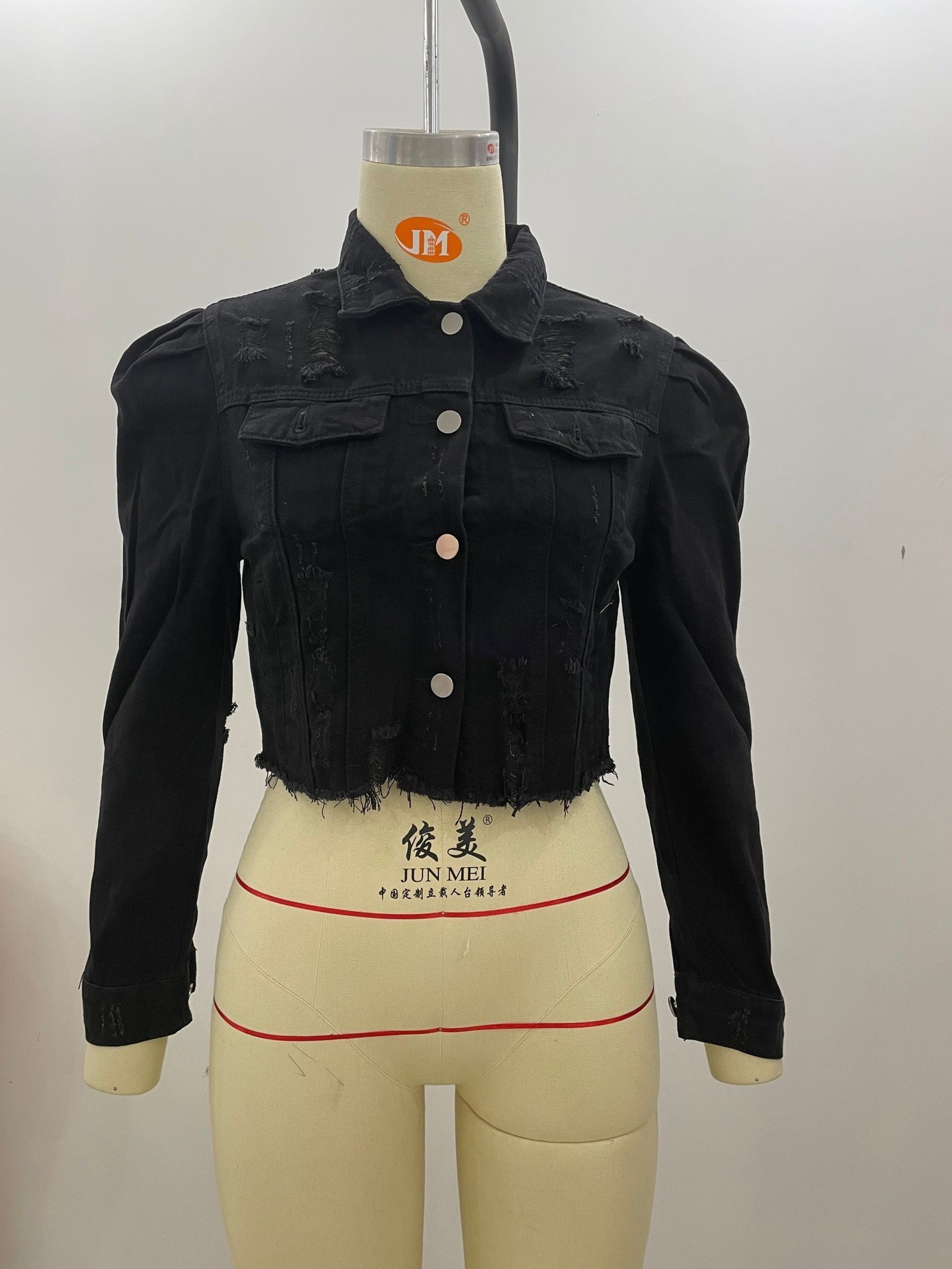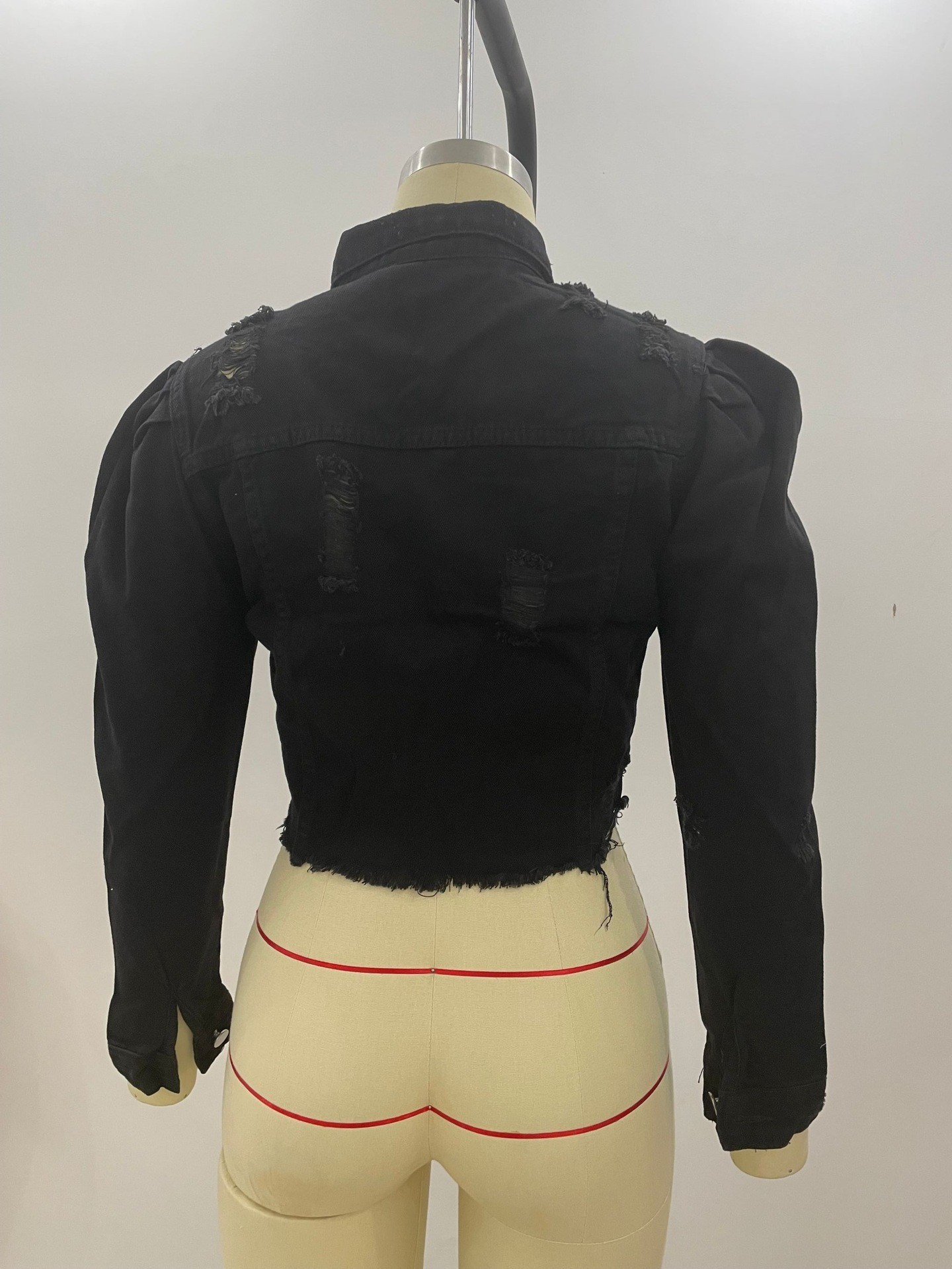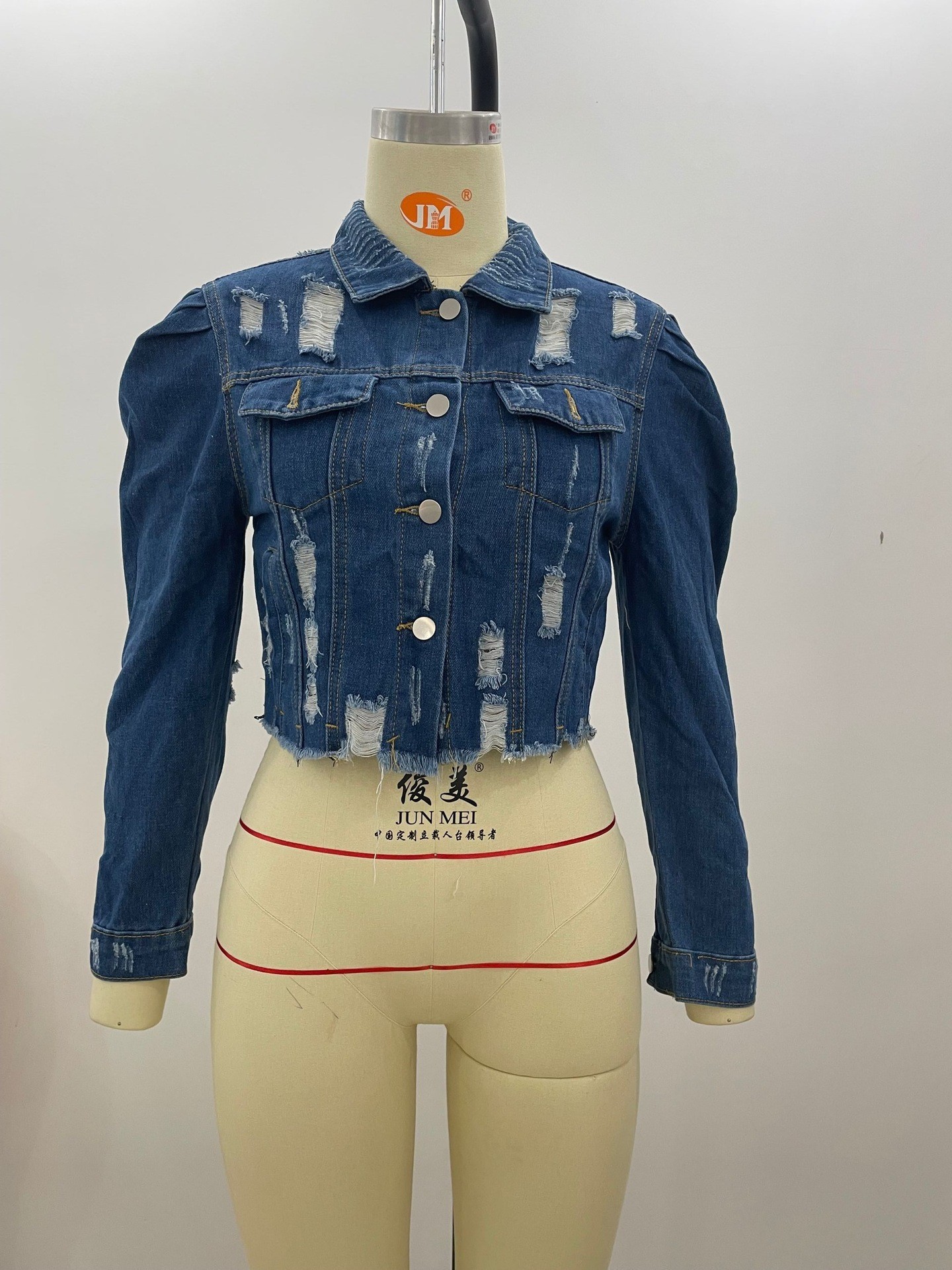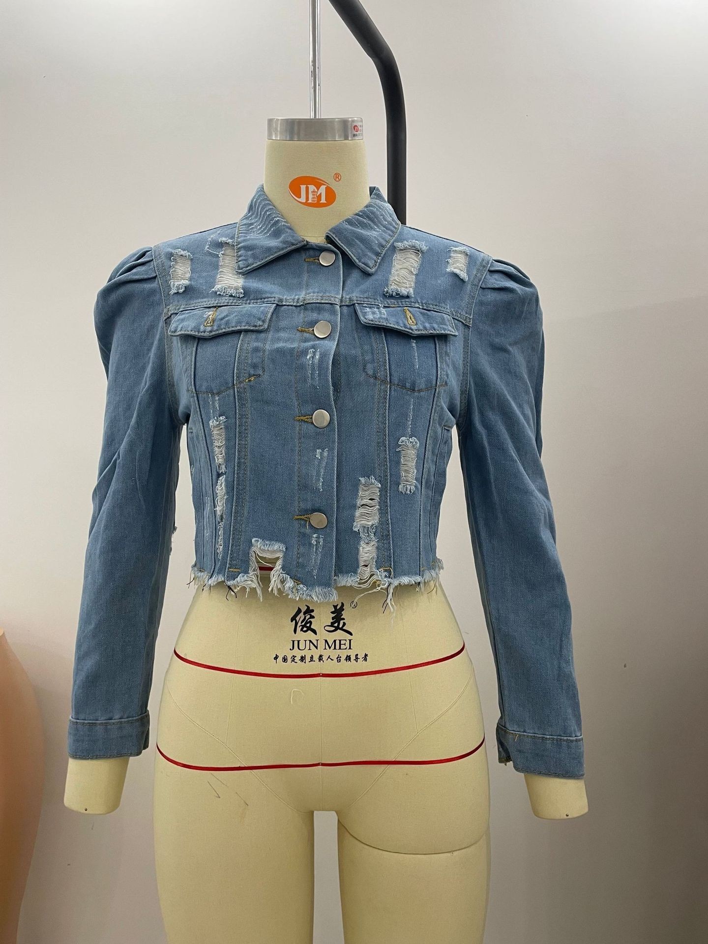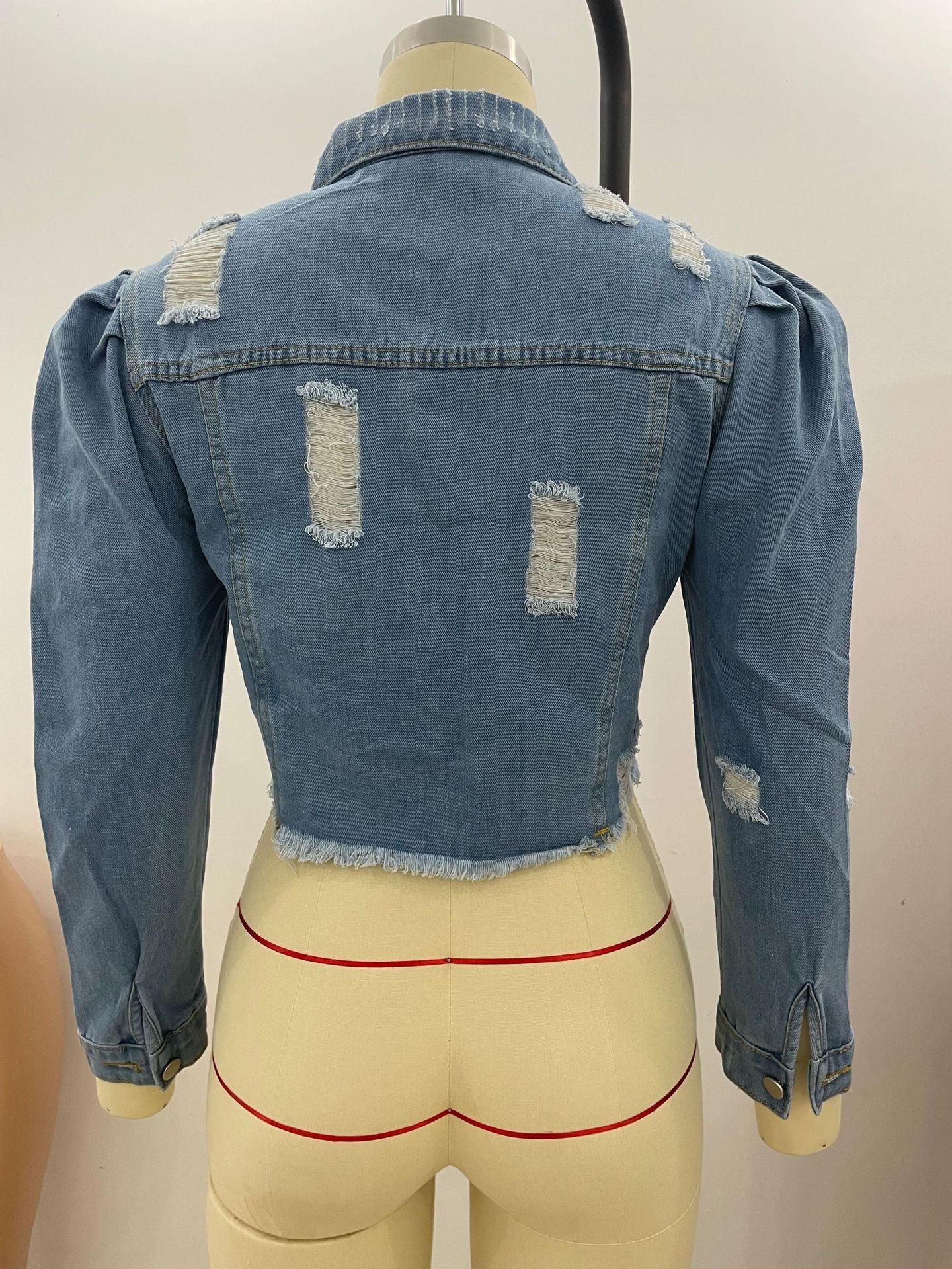 Short Worn Denim Jacket Women Puff Sleeve Denim Jacket