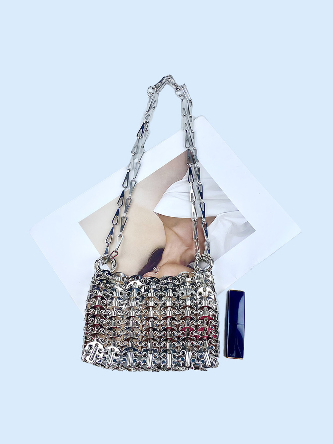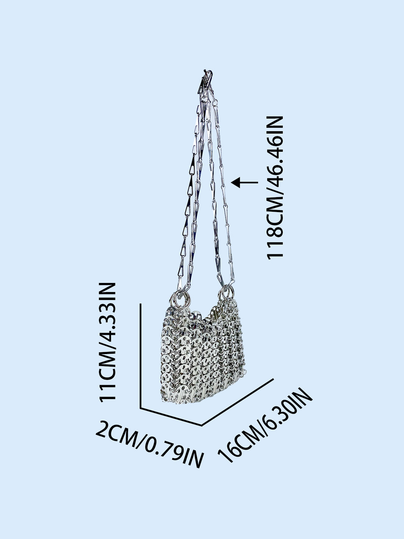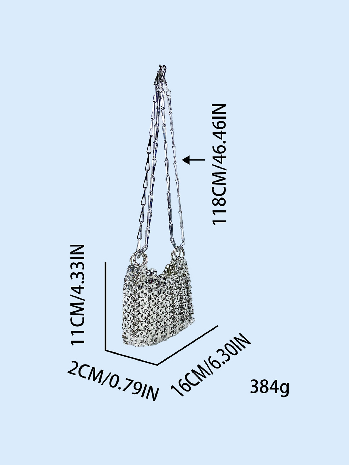 Silver Shiny Bag Hand Woven Sequin Sequin Bag Mobile Phone Bag Long Shoulder Strap Shoulder Messenger Bag for Women