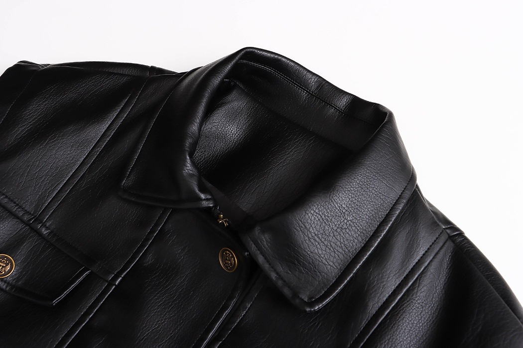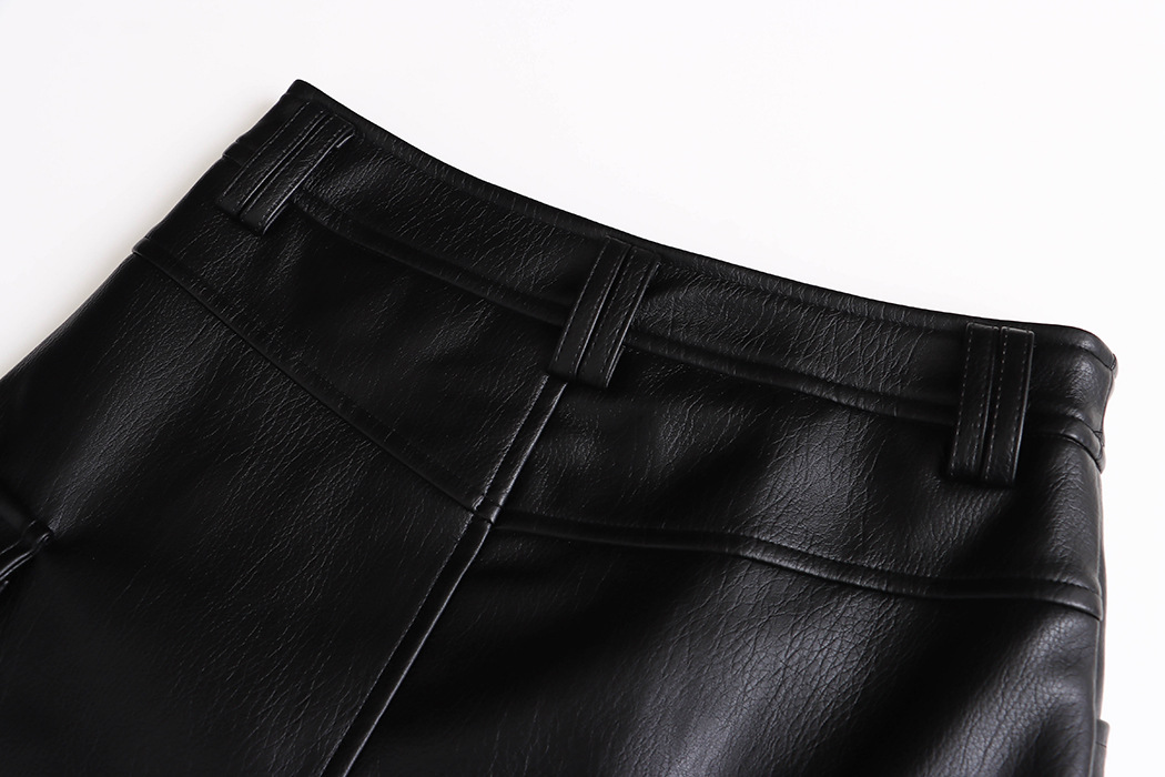 Sinan Early Autumn Retro Workwear Pocket Faux Leather Jacket Coat Skirt Set