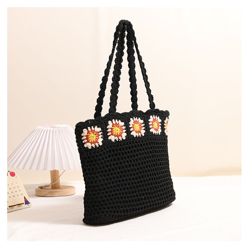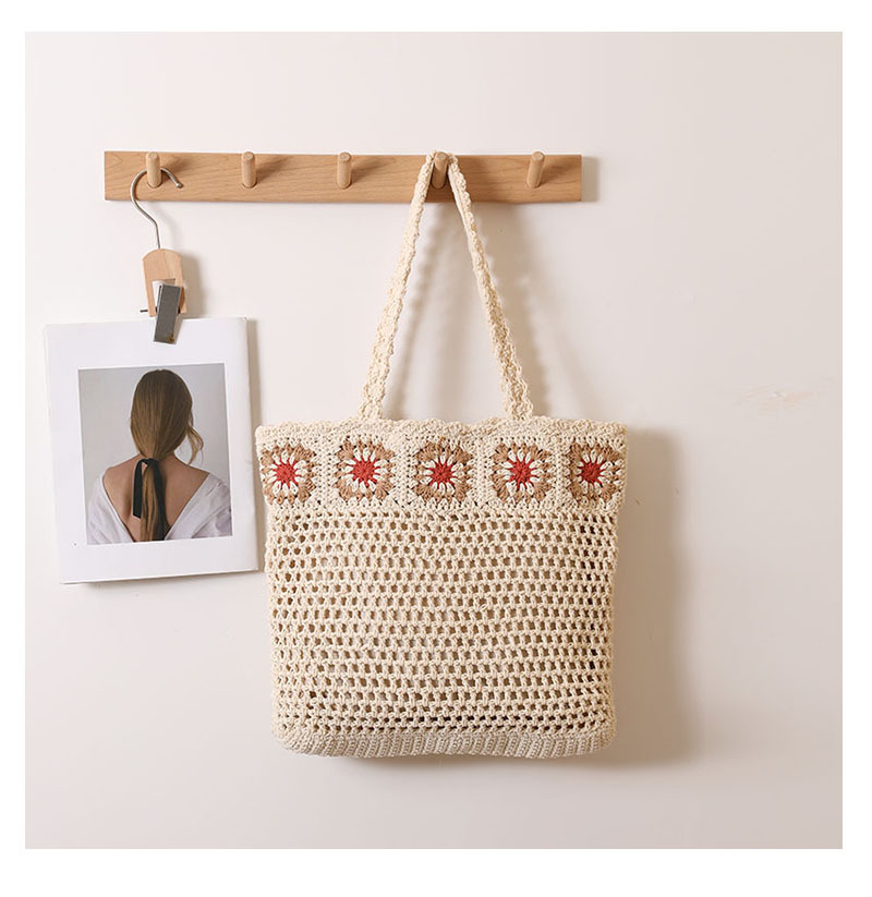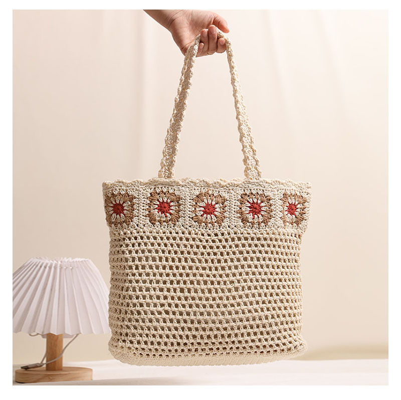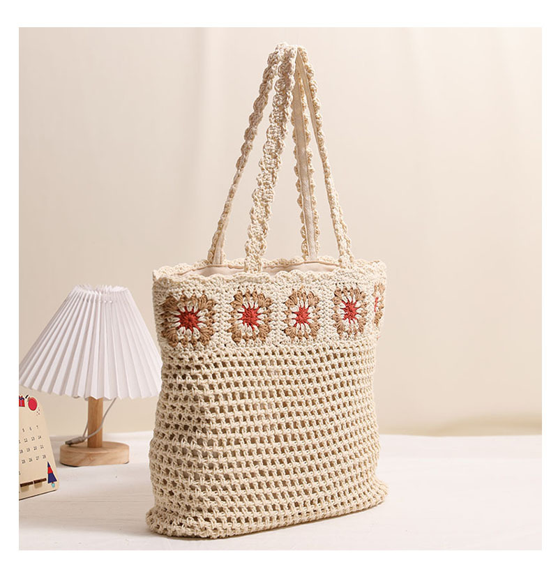 Single Shoulder Cotton Thread Woven Bag Floral Cutout Straw Bag Seaside Vacation Beach Bag