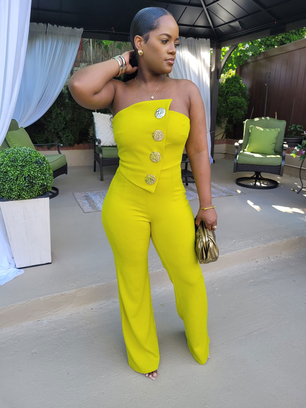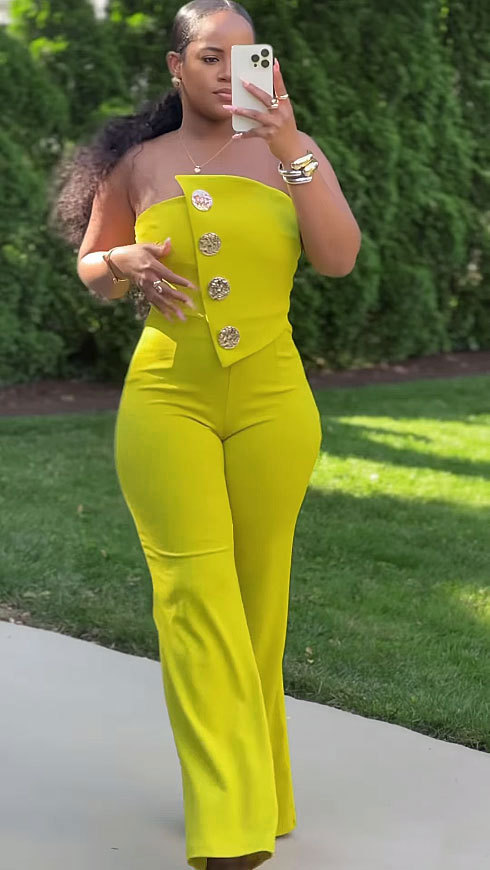 Sleeveless Tube Top Sheath Stretchy Wide Leg Jumpsuit