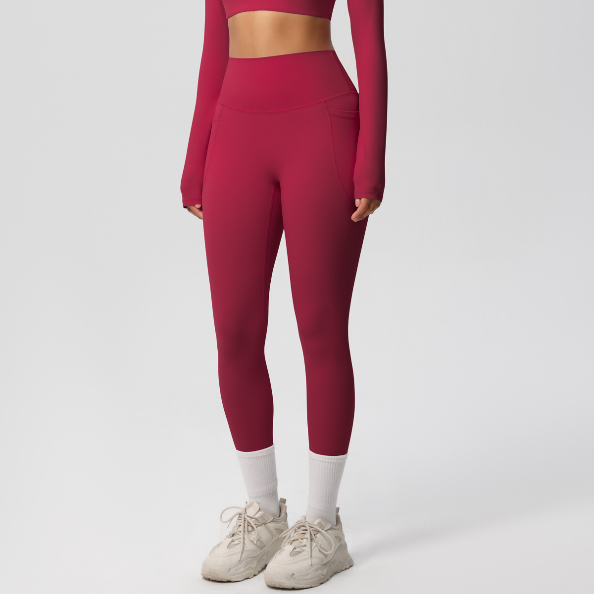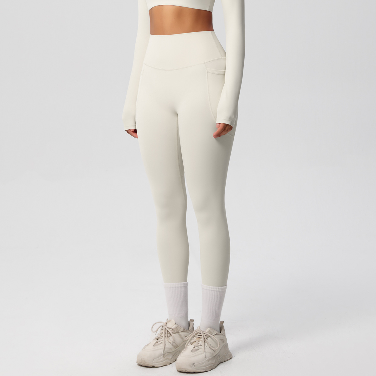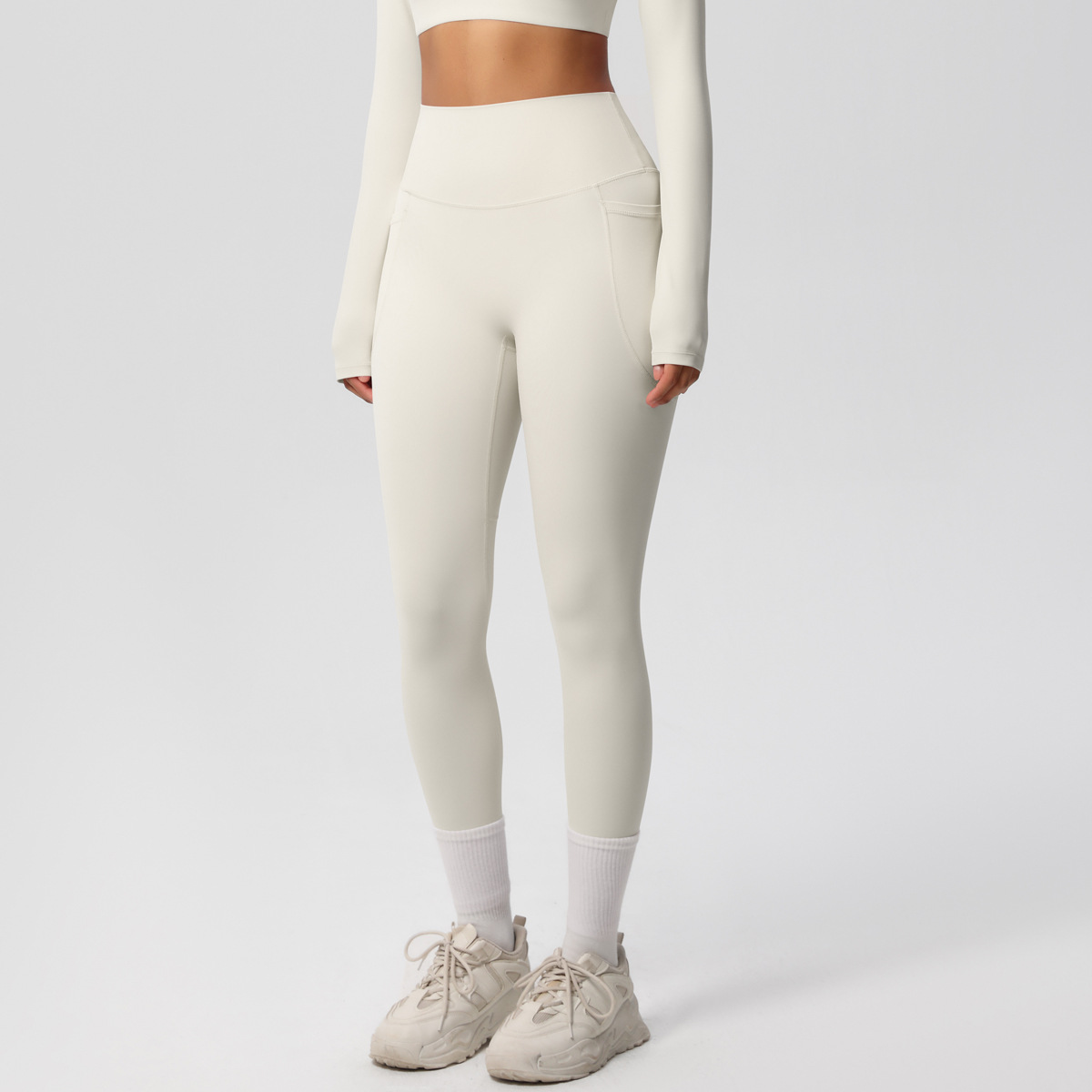 Solid Color Double Sided Sanding Tight High Waist High Elastic Breathability Yoga Pants Sports Running Fitness Yoga Wear