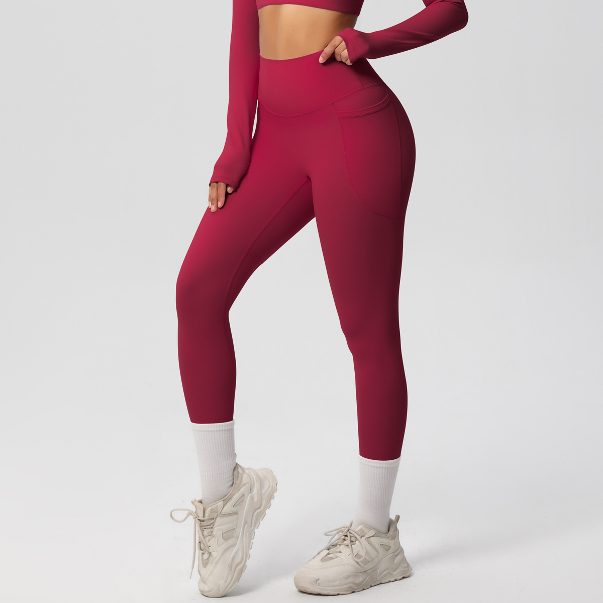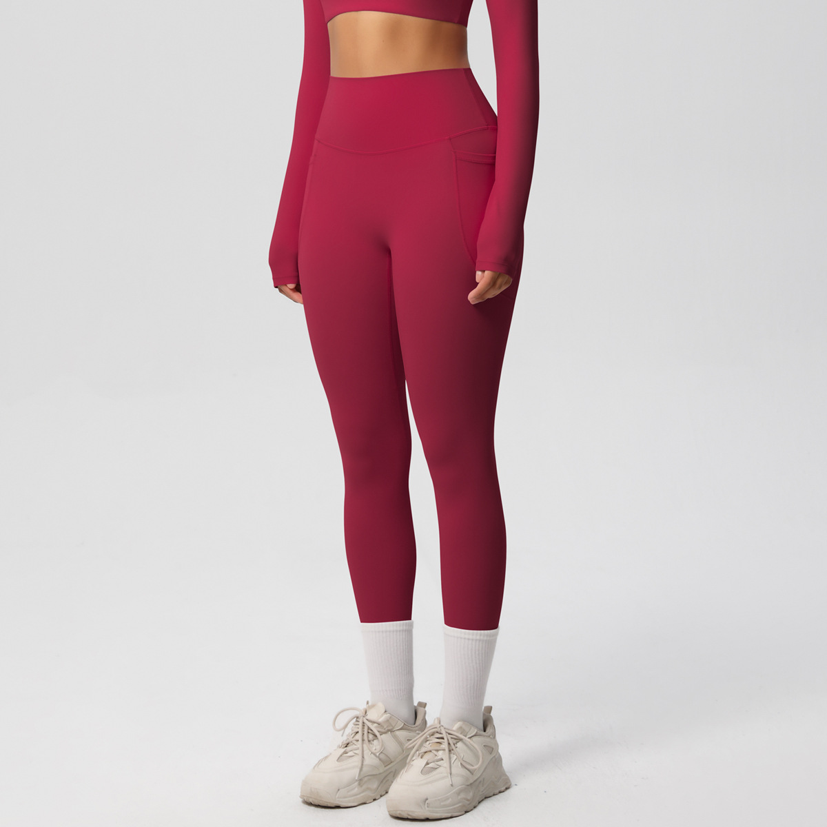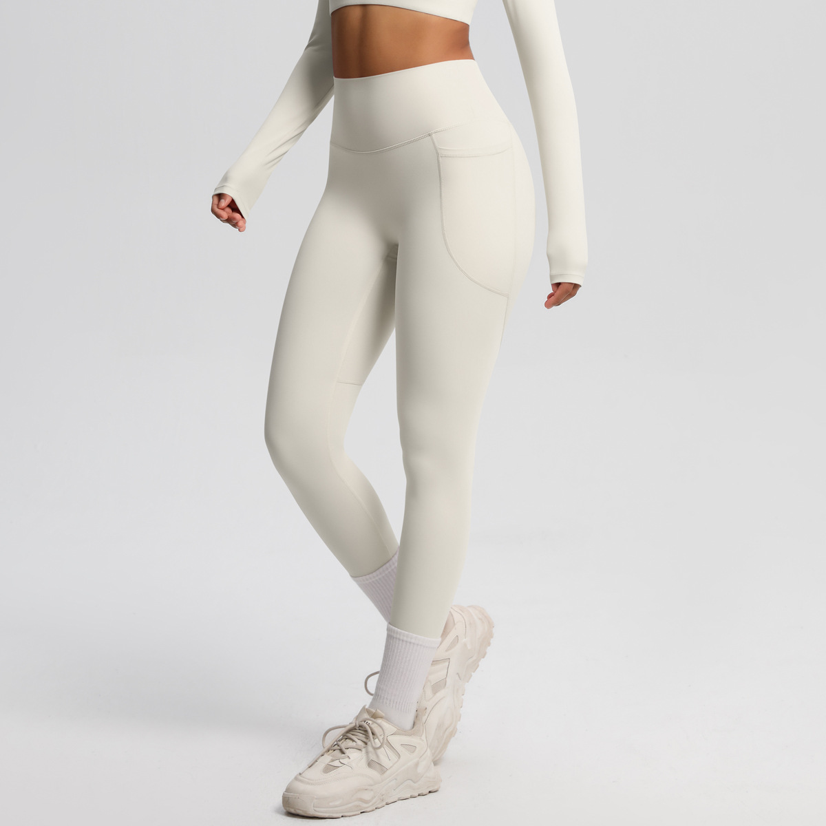 Solid Color Double Sided Sanding Tight High Waist High Elastic Breathability Yoga Pants Sports Running Fitness Yoga Wear