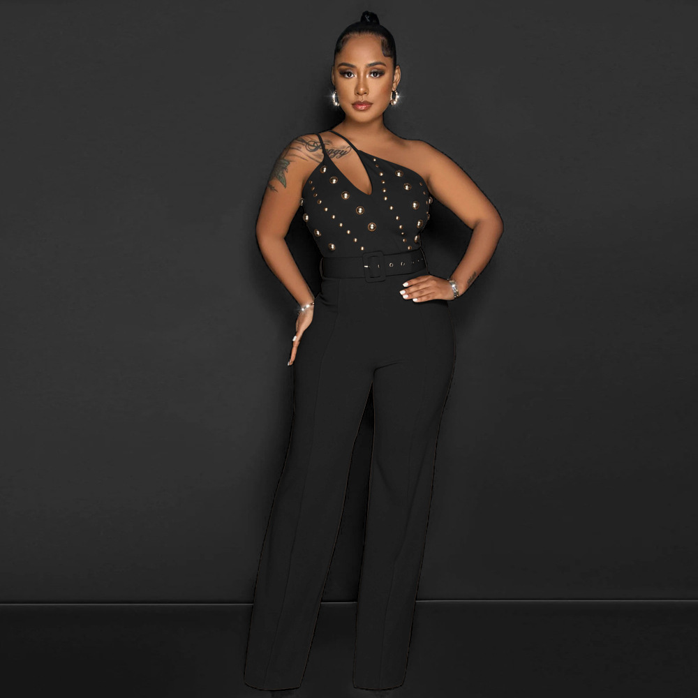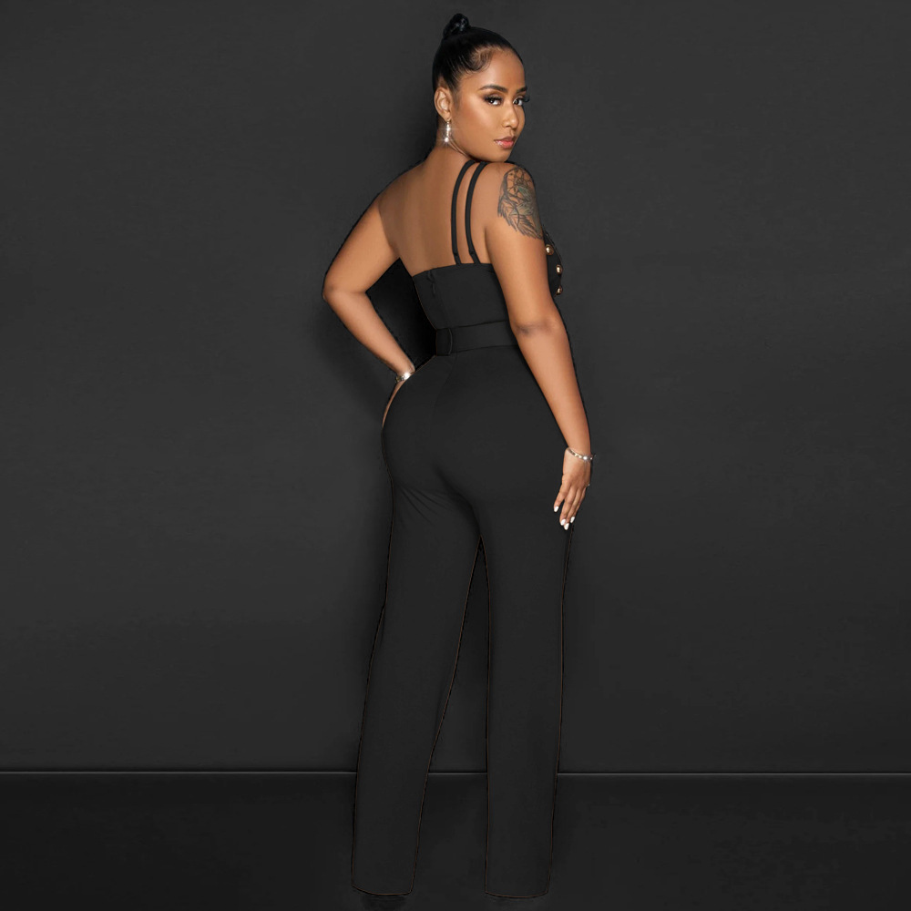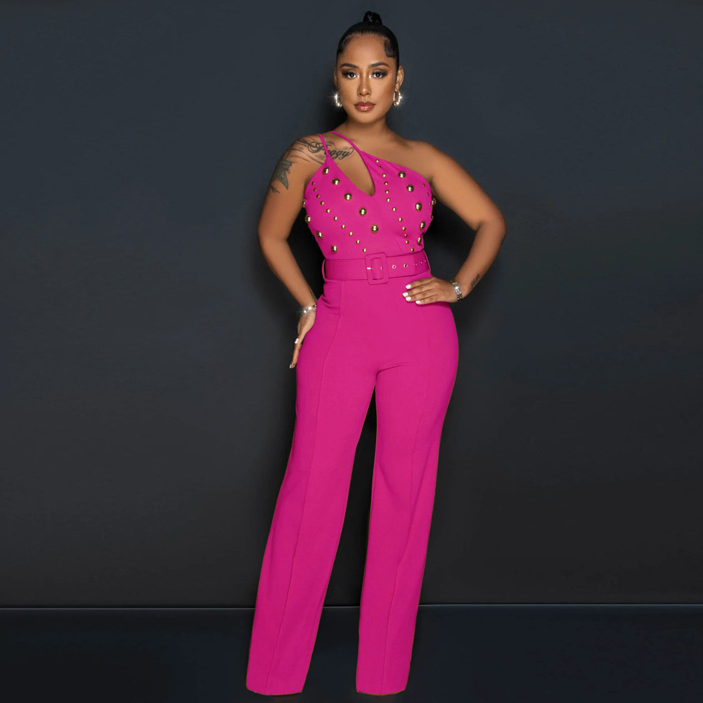 Solid Color Jumpsuit Slim Fit One Shoulder Wide Leg Pants Women