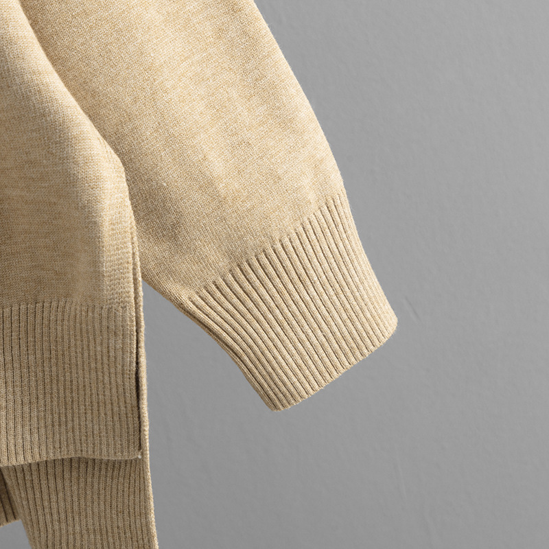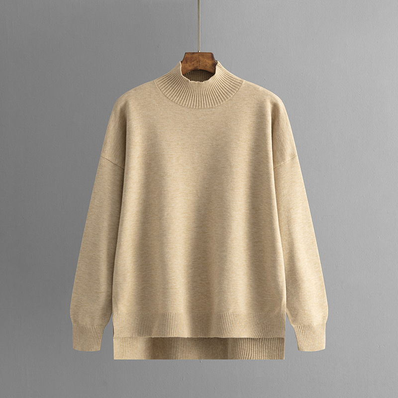 Solid Color Knitted Half Turtleneck Slit Sweater Women Fall Winter Casual Two Piece Sweater