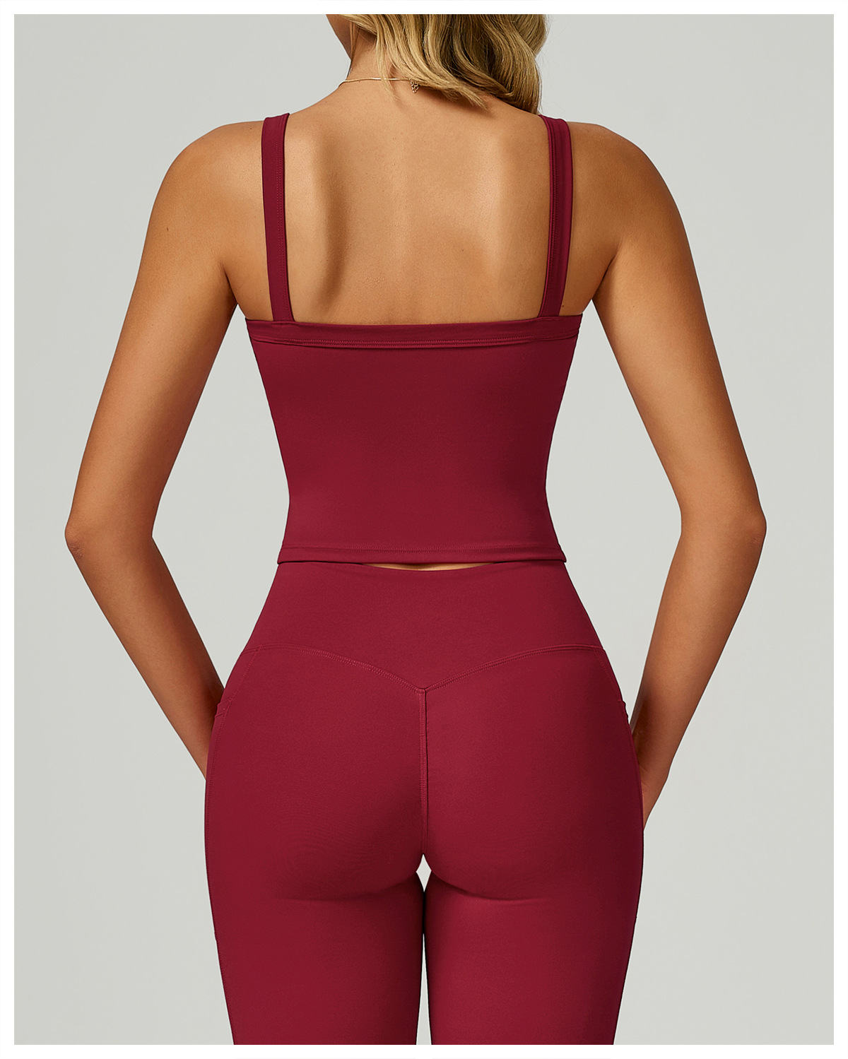 Sollinarry Double-Shoulder Strap Yoga Vest Nude Feel Beauty Back Slim Fit Sports Vest Outdoor Running Sports Workout Clothes