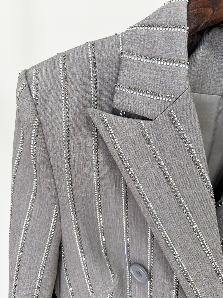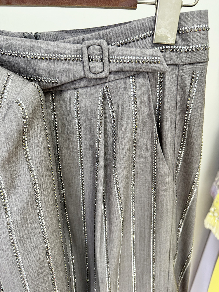 Spring Advanced Gray Heavy Embroidery Drilling Double Breasted Work Pant Two Piece Set