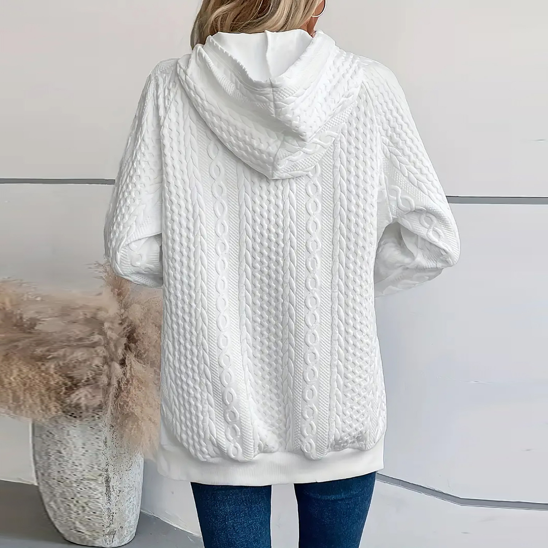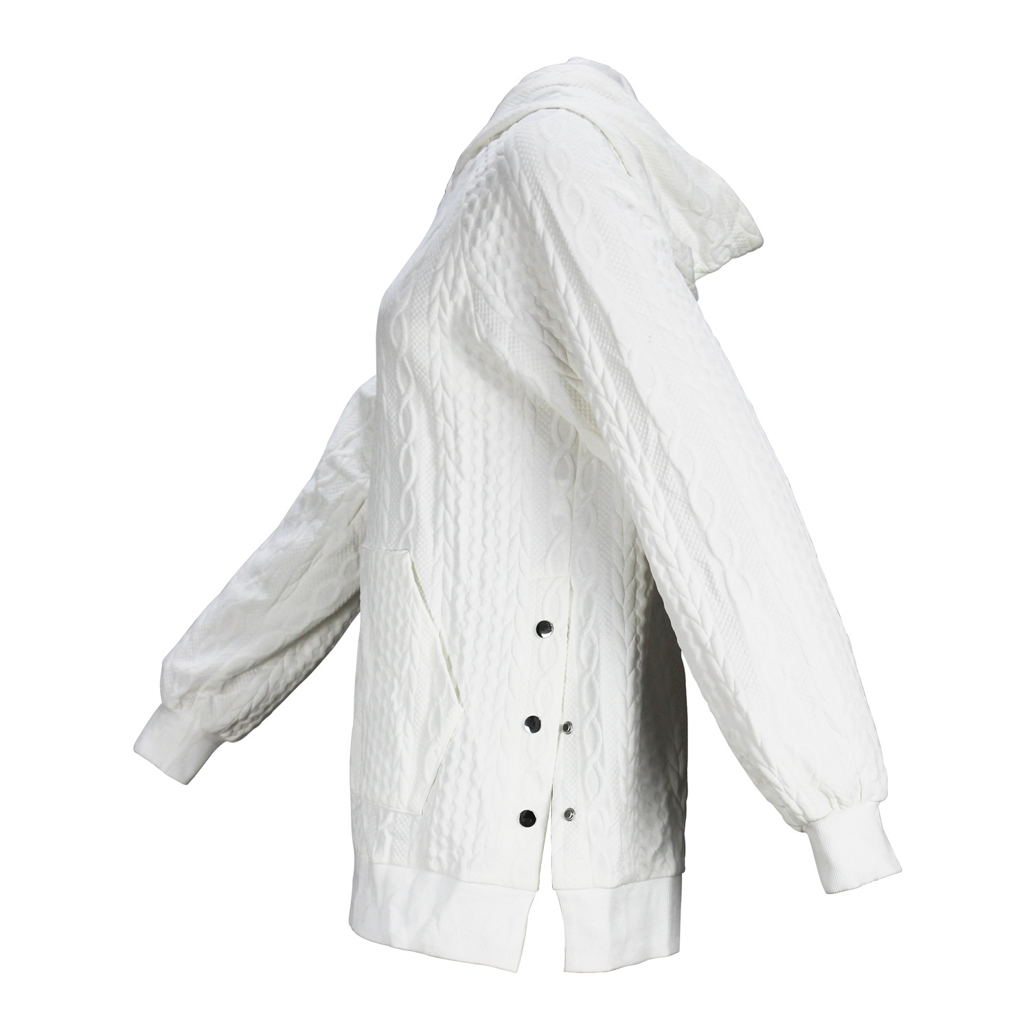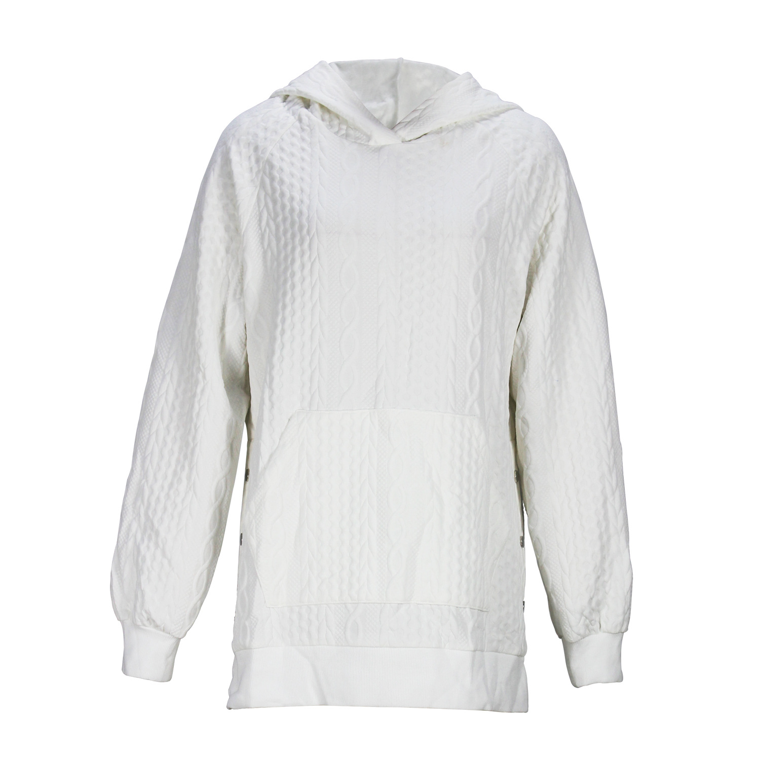 Spring Autumn Women Hooded Sweater Hem Split Solid Color Casual Top