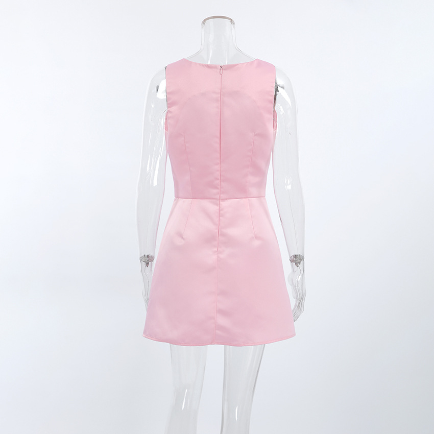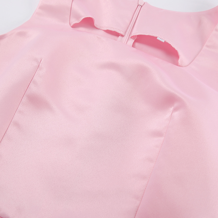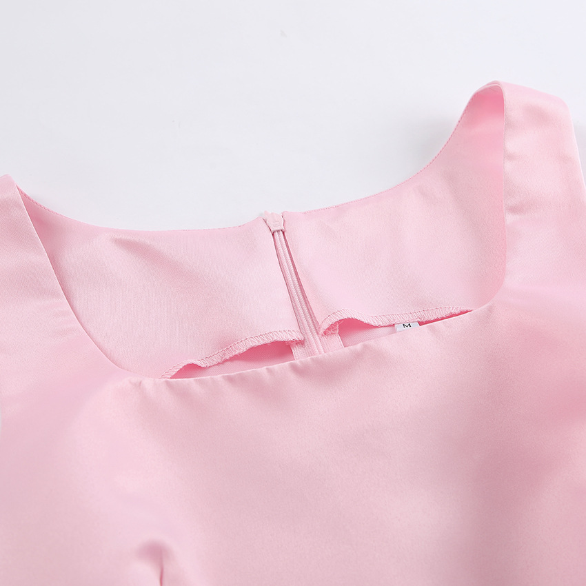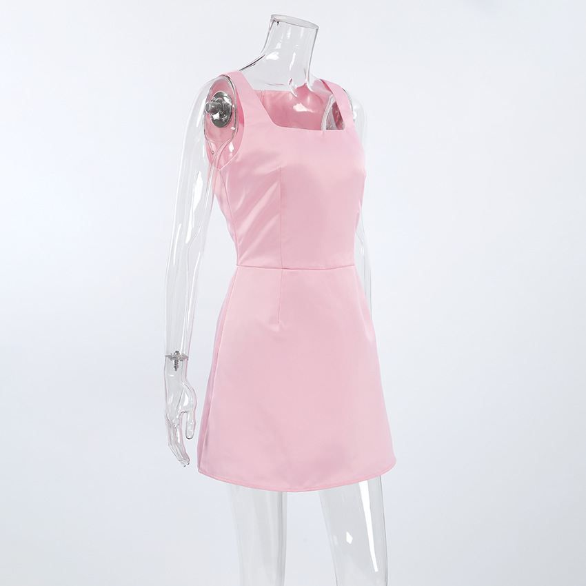 Spring Girlish Pink Square Collar Shoulder Strap Dress Women Short Dress