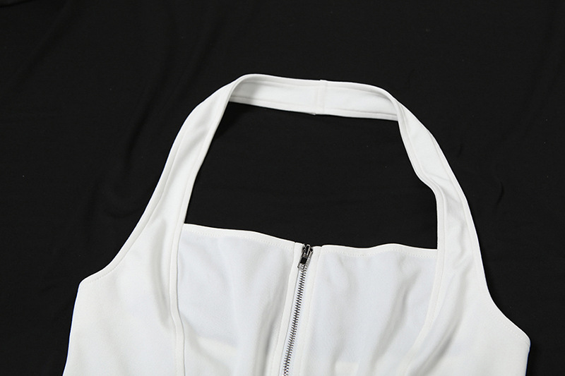 Spring Sexy Slim Fit Halter Zipper Romper Solid Color Backless Straight Leg Pants