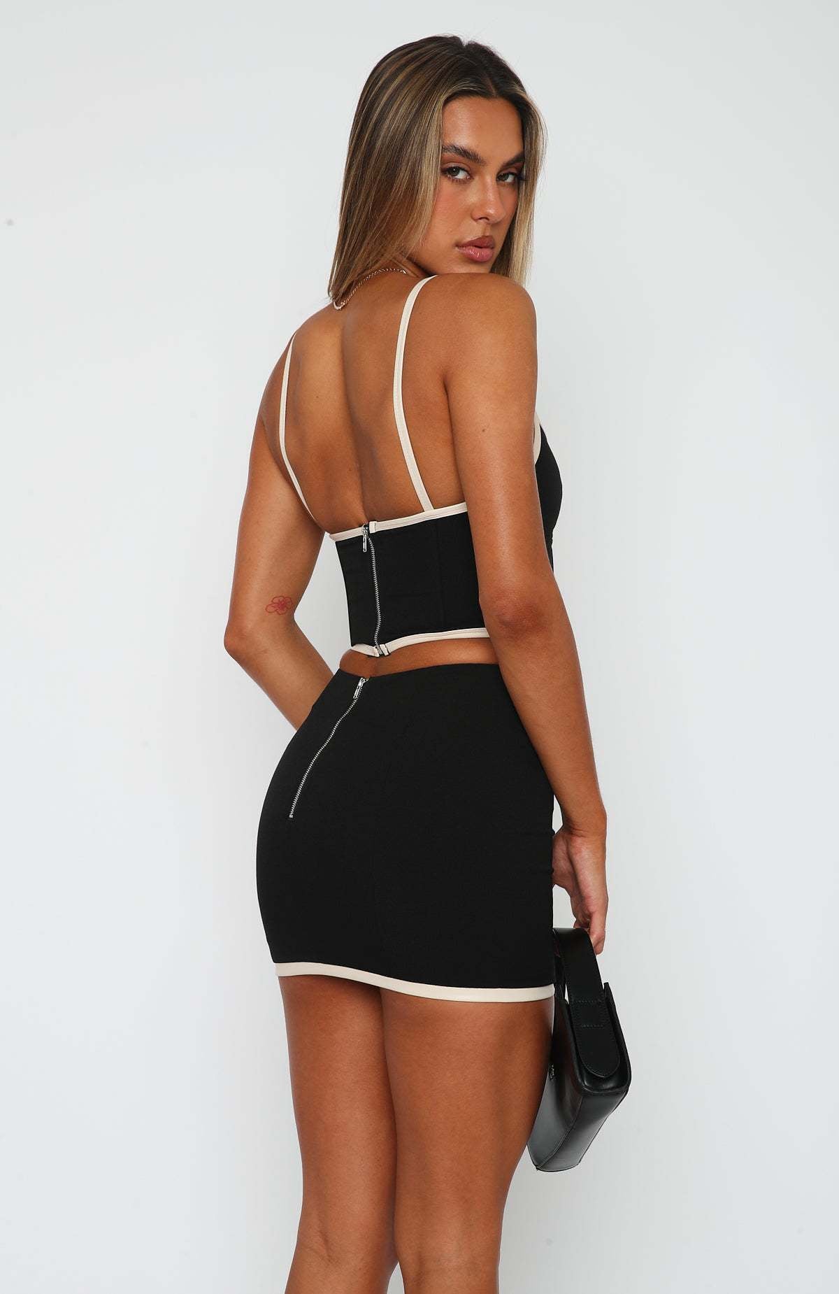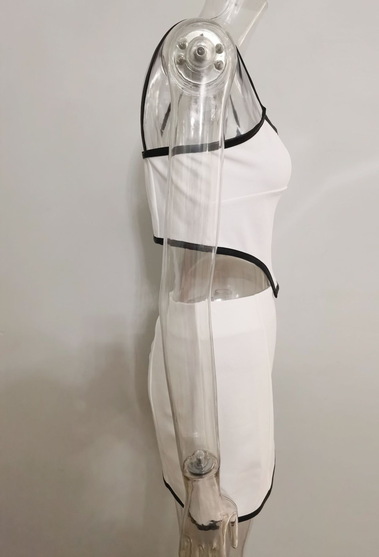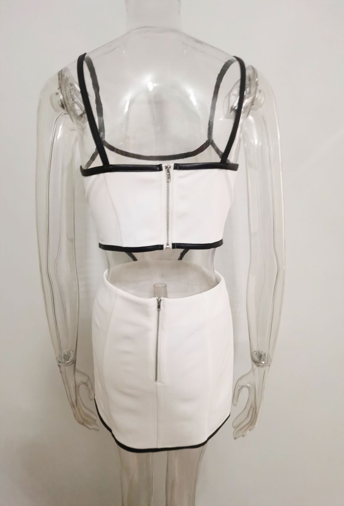 Spring Summer Contrast Color Sexy Suspenders Slimming Hip Skirt Set