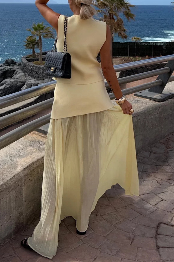 Spring Summer Knitted Stitching Vest Set Casual Vacation Loose Skirt Women