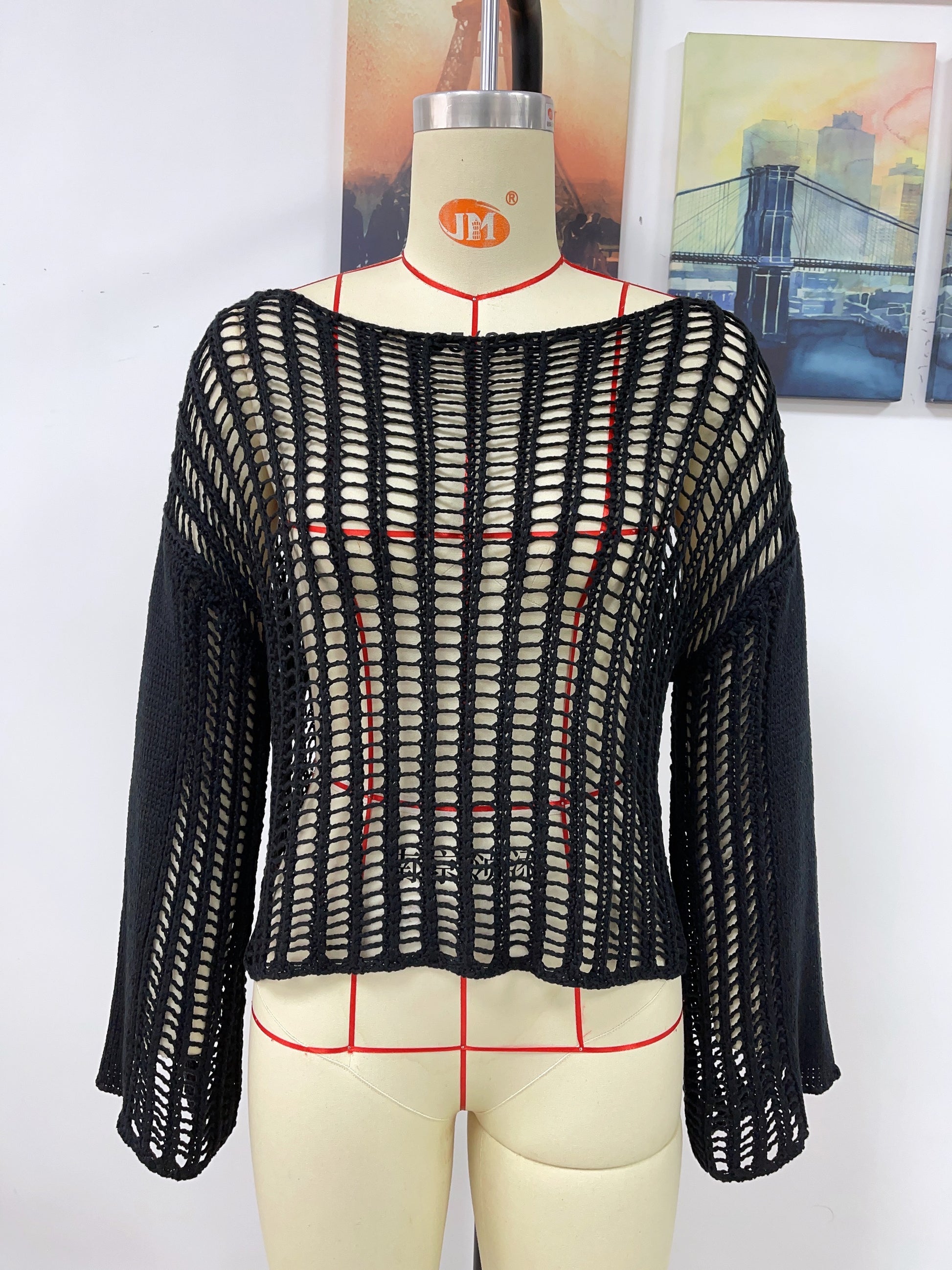 Spring Summer Knitwear Women Hand Crocheting Blouse Off The Shoulder Hollow Out Cutout Women Knitted Knitwear