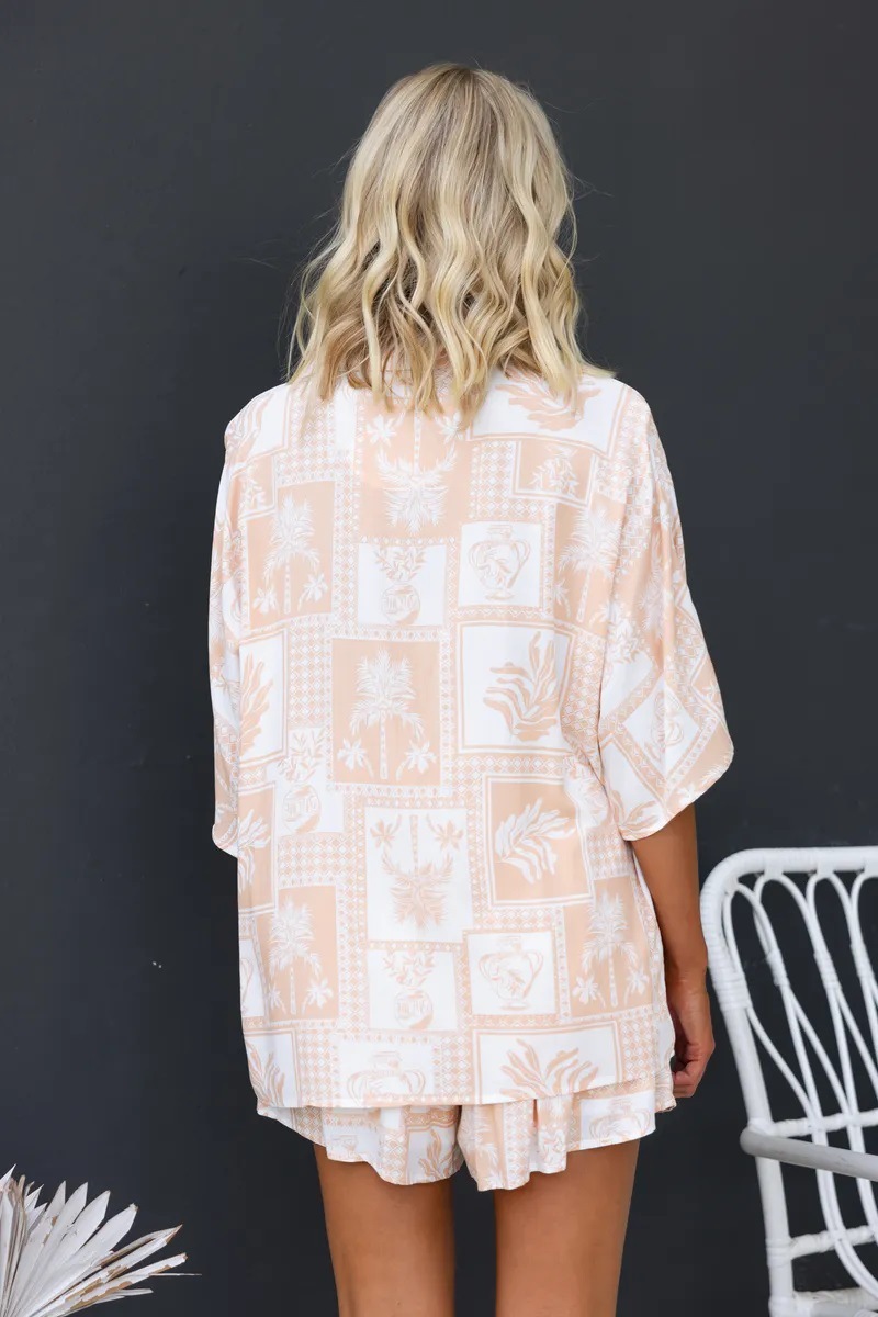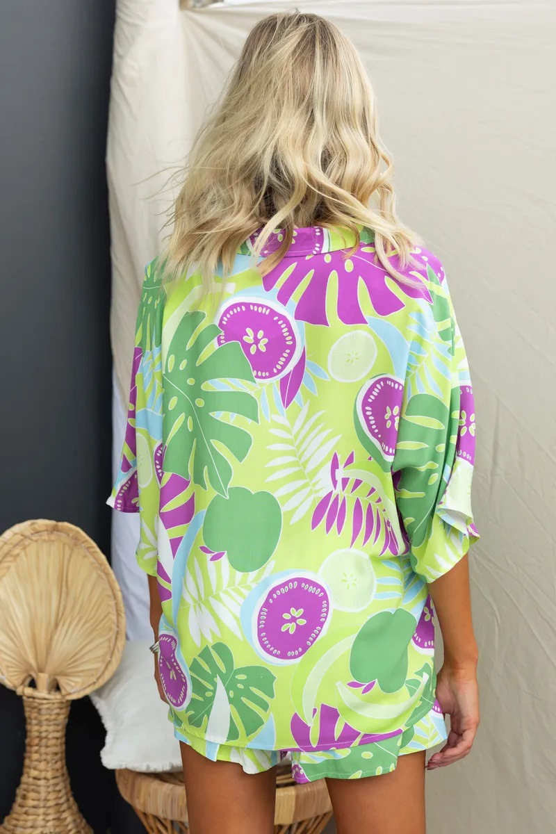 Spring Summer Polo Collar Casual Multi Color Suit Loose Vacation Elastic Waist Two Piece Set
