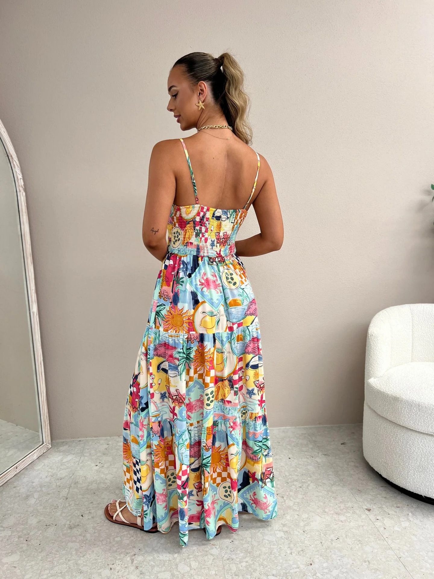 Spring Summer Suspender Printing Dress Loose Vacation Casual Rubber Band Dress