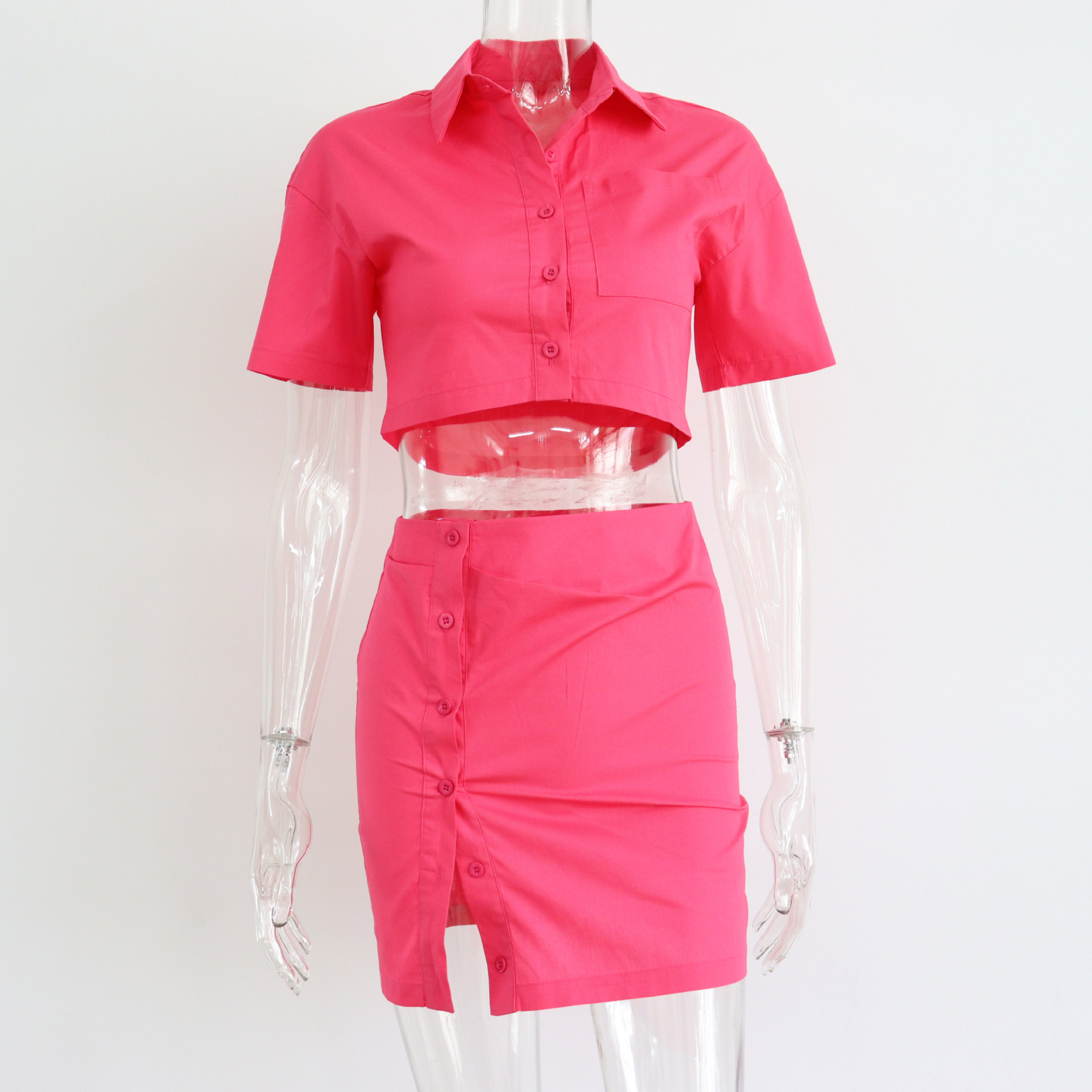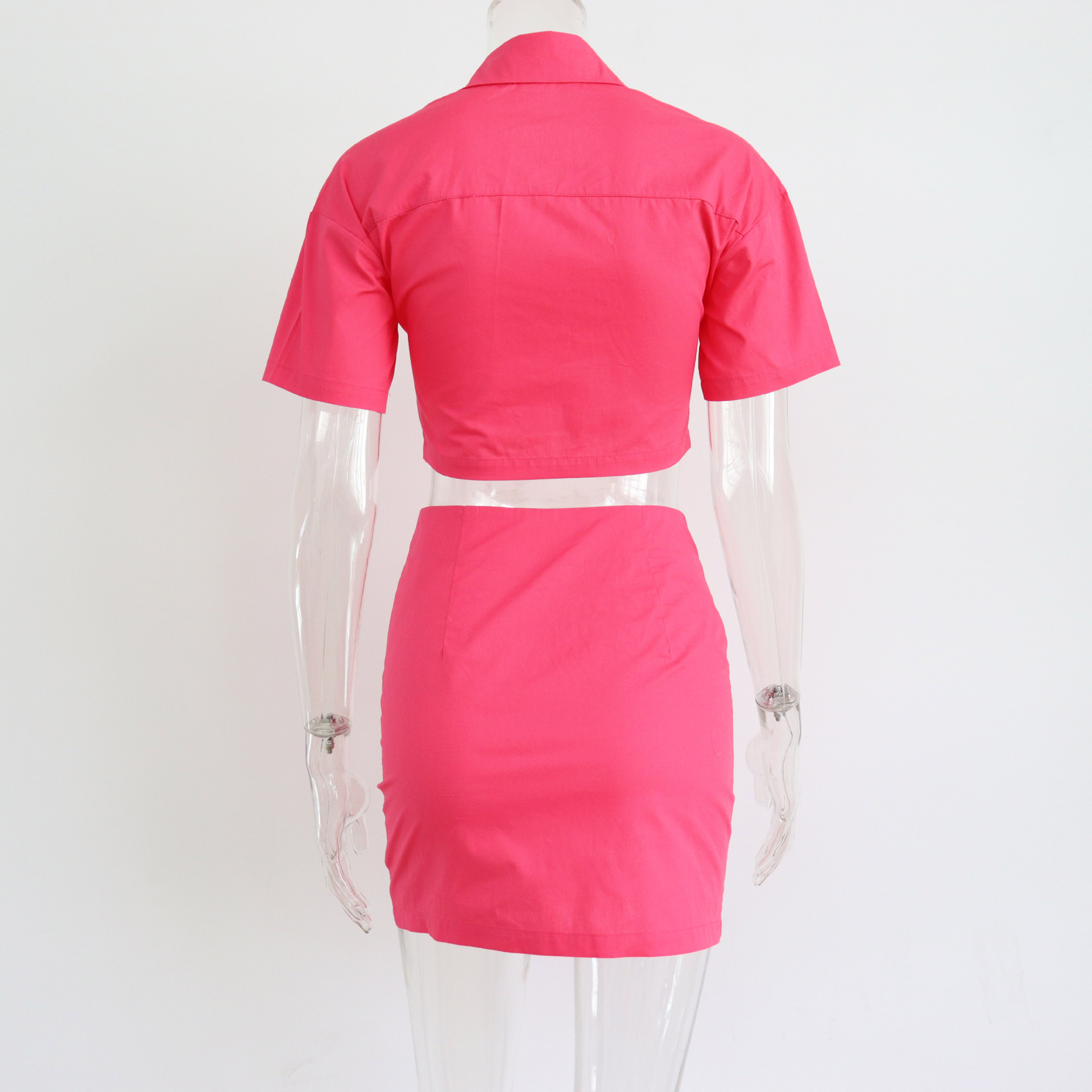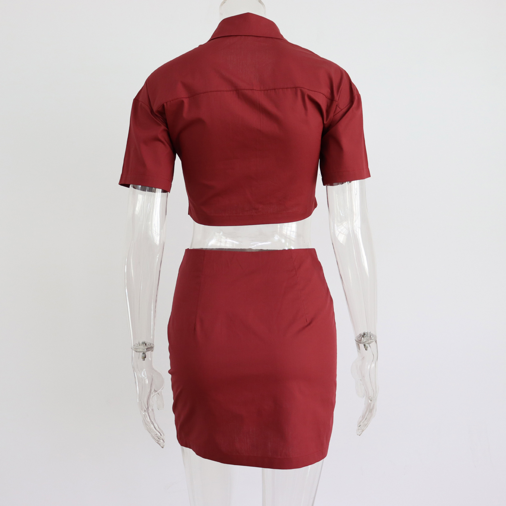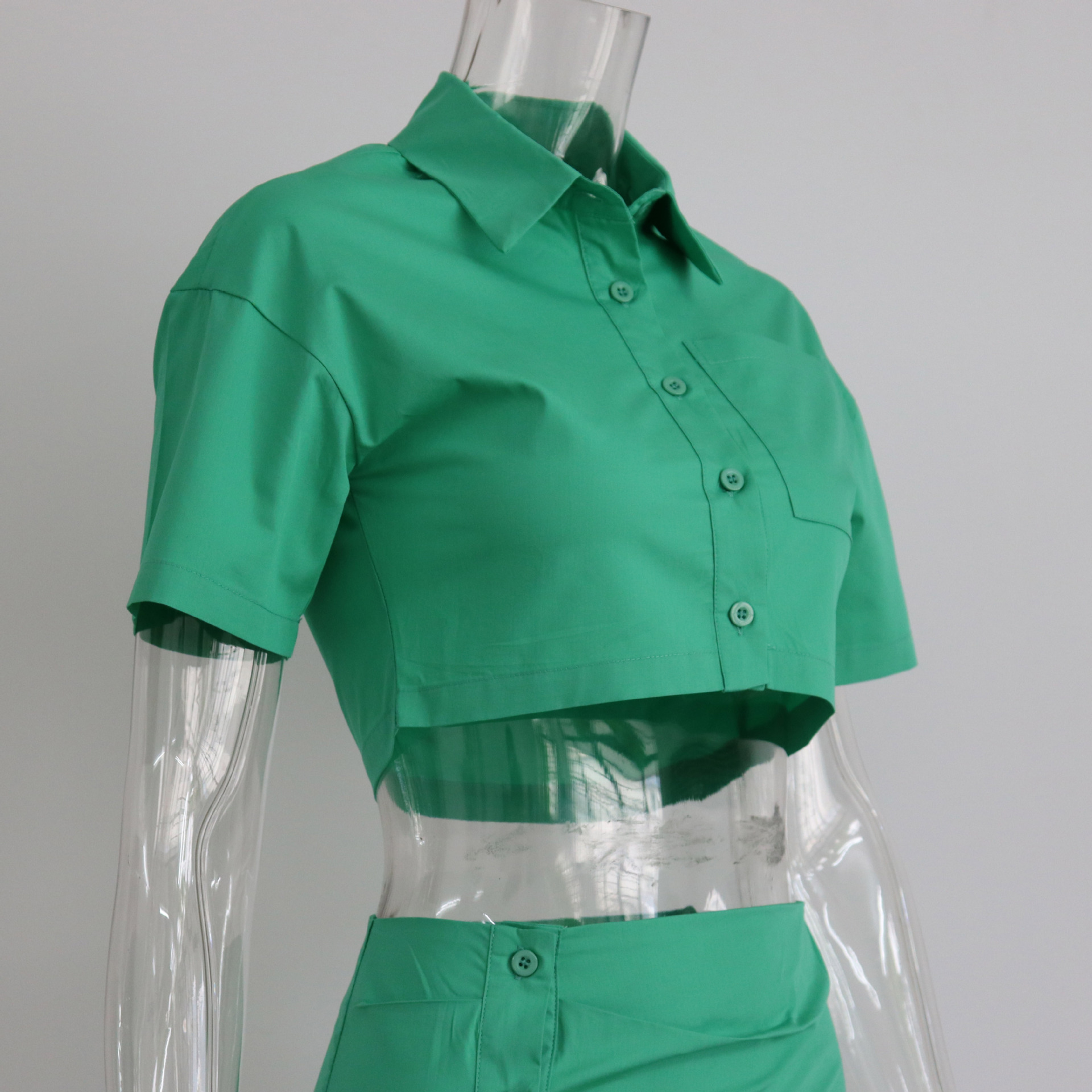 Spring Summer Two Piece Set Sexy Collared High Waist Short Sleeve Shirt Outfit