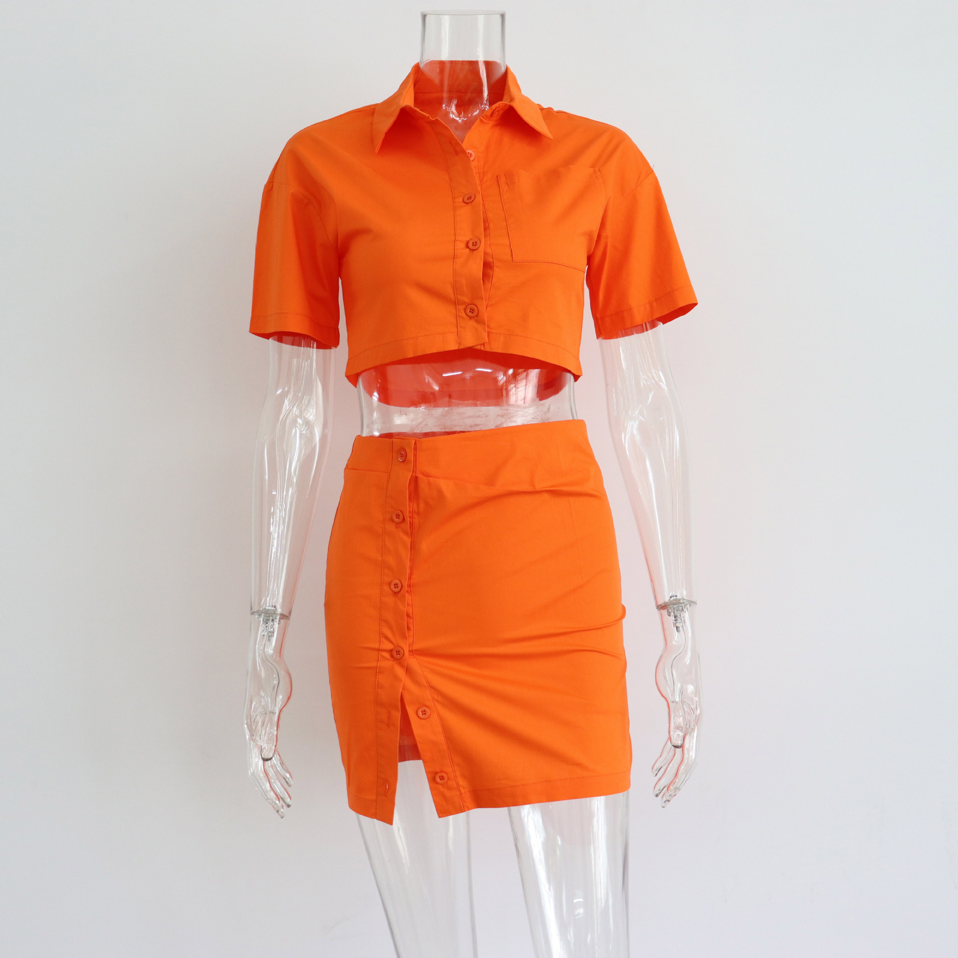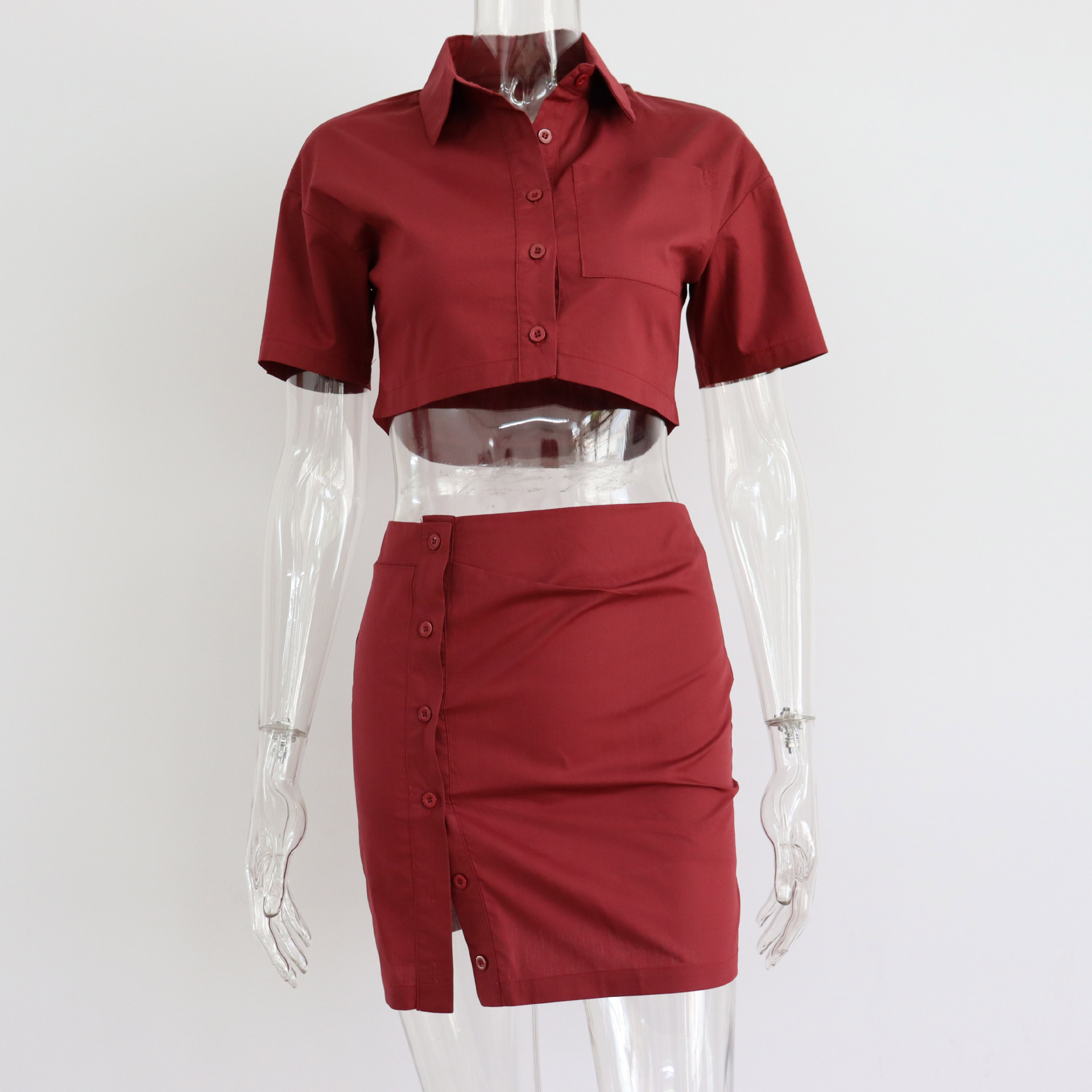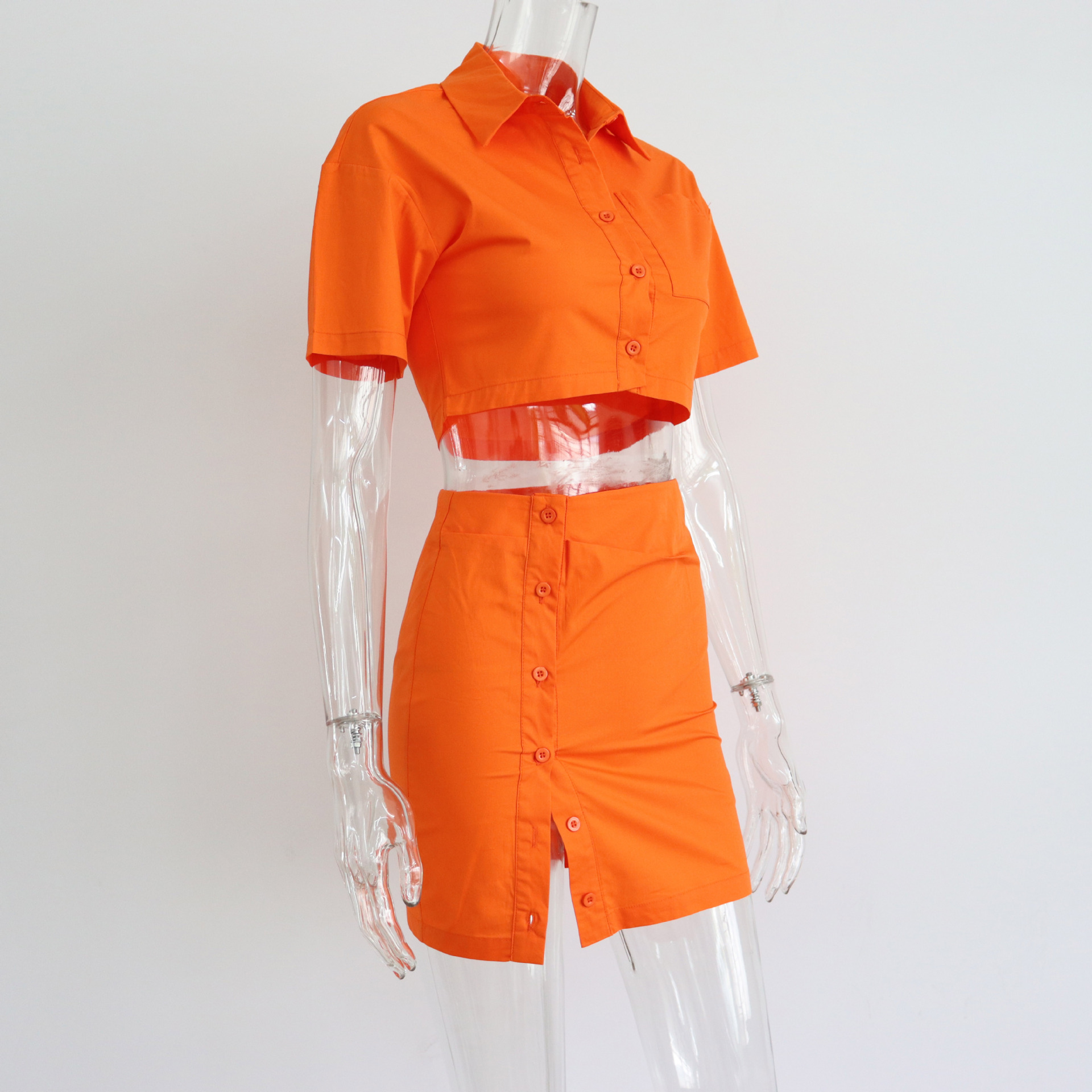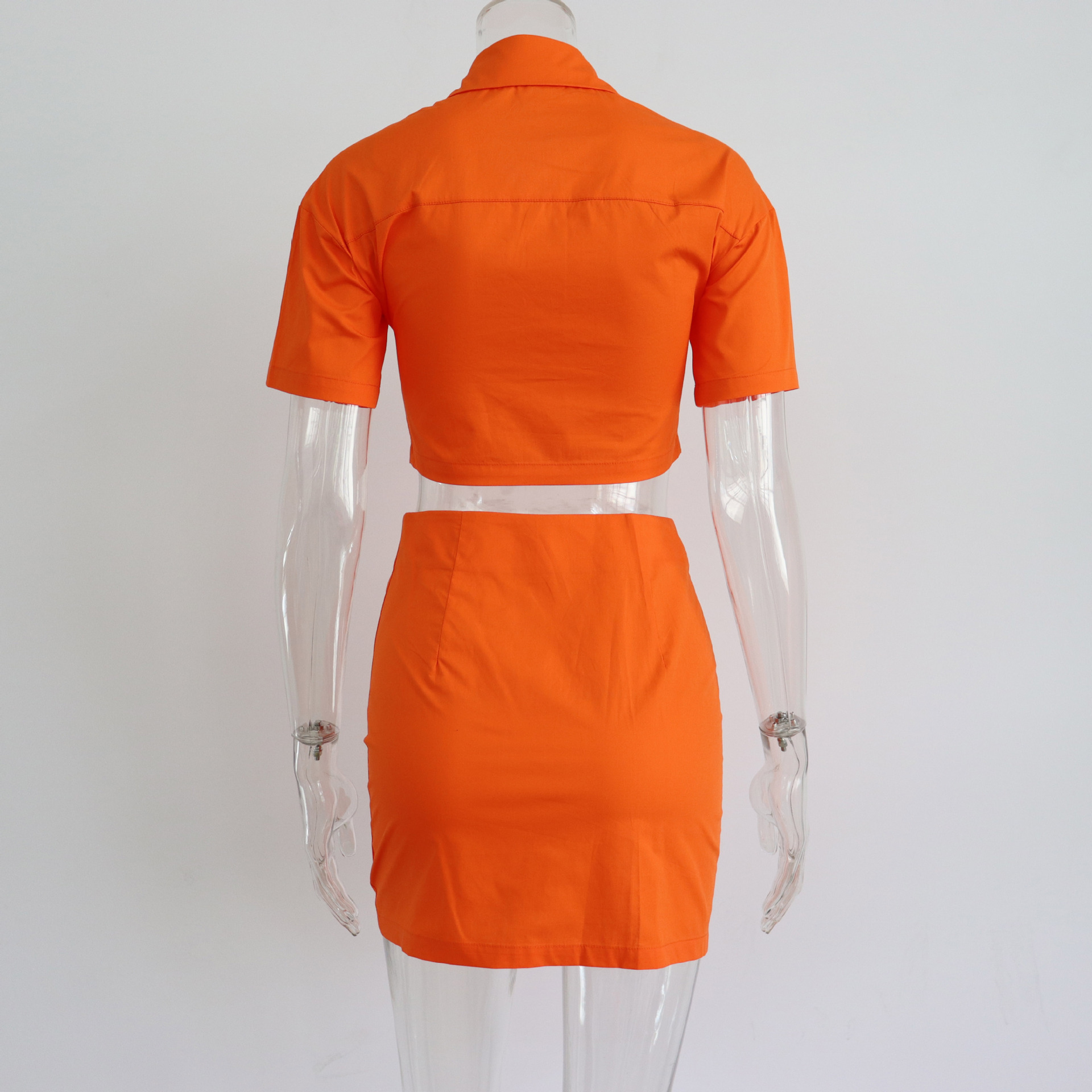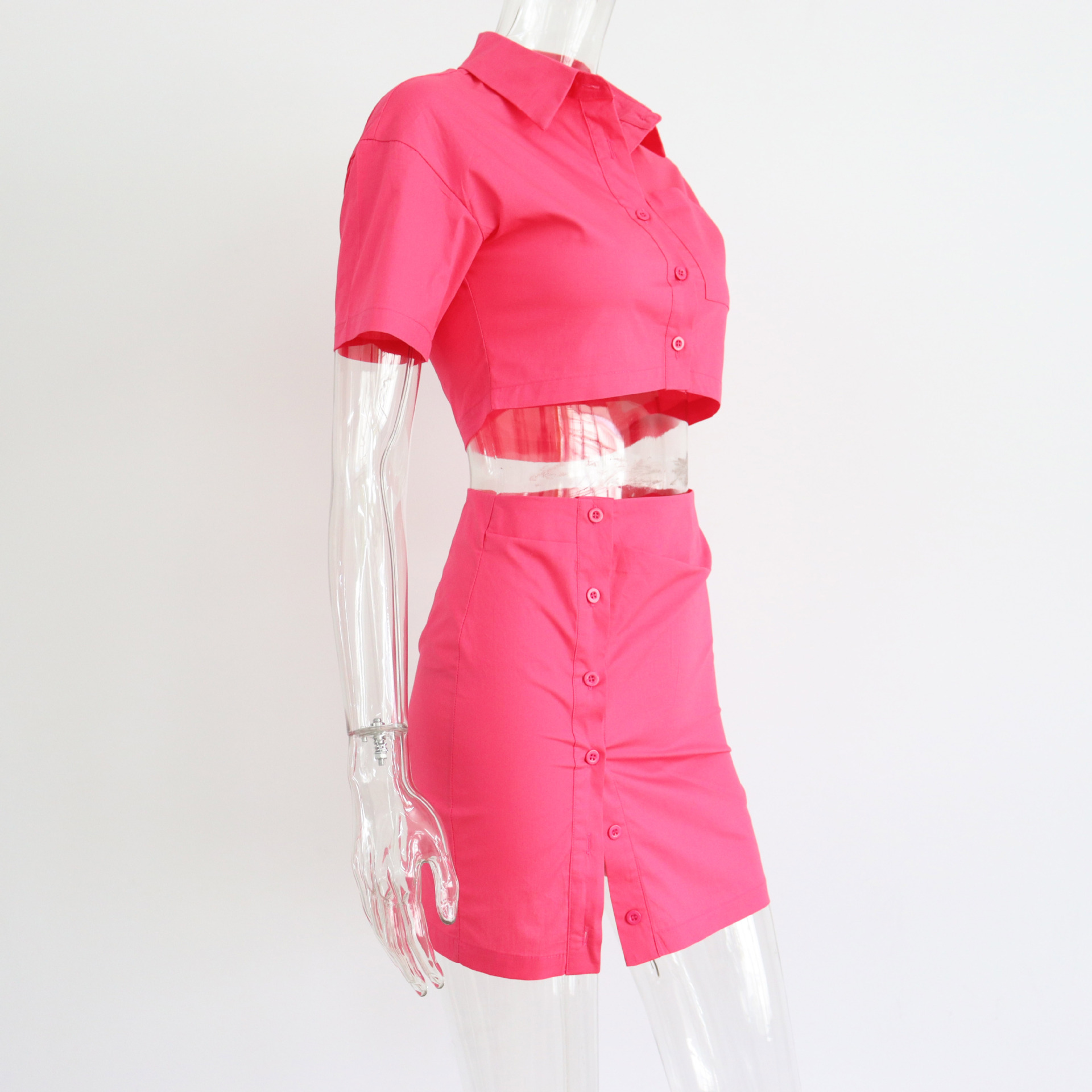 Spring Summer Two Piece Set Sexy Collared High Waist Short Sleeve Shirt Outfit