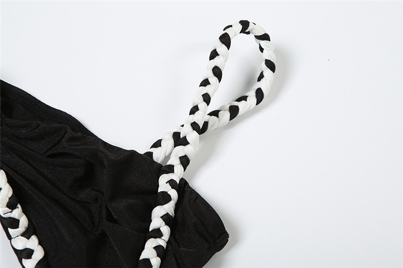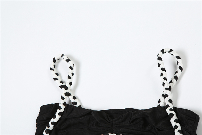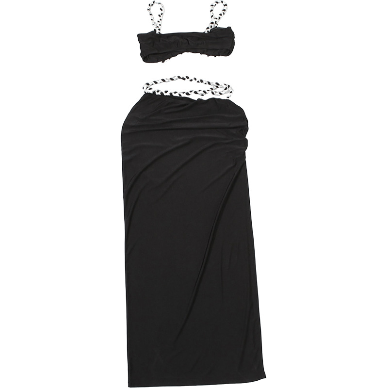 Spring Summer Women Clothing Cool Contrast Color Camisole Sexy Slim Side Slit Skirt Set