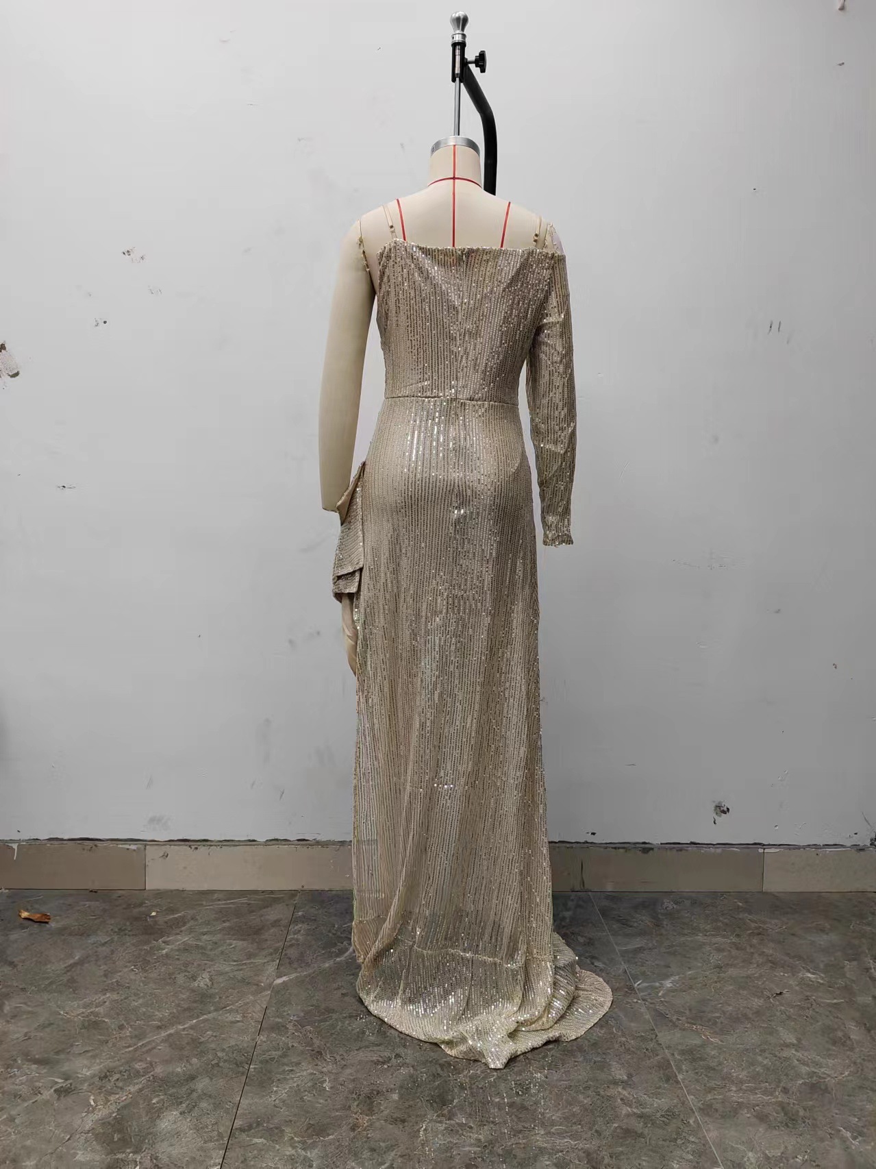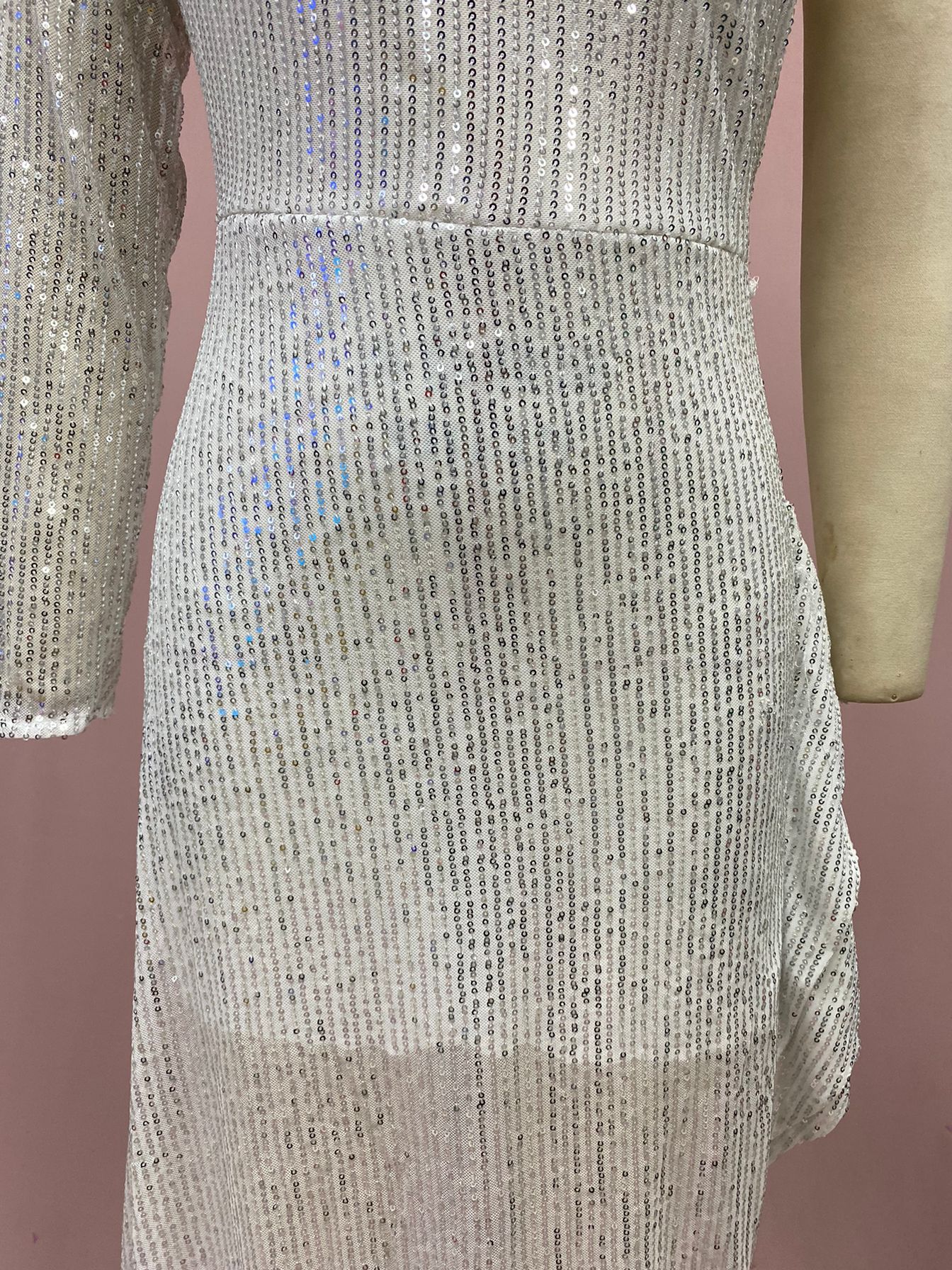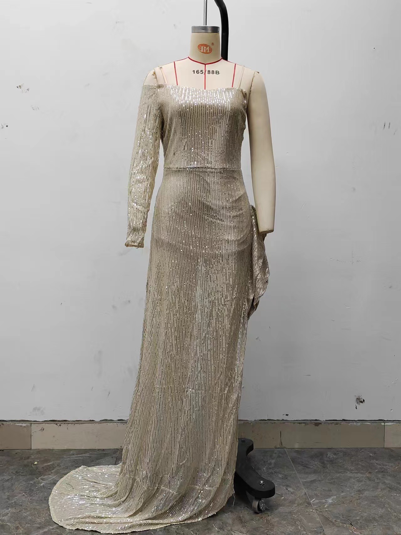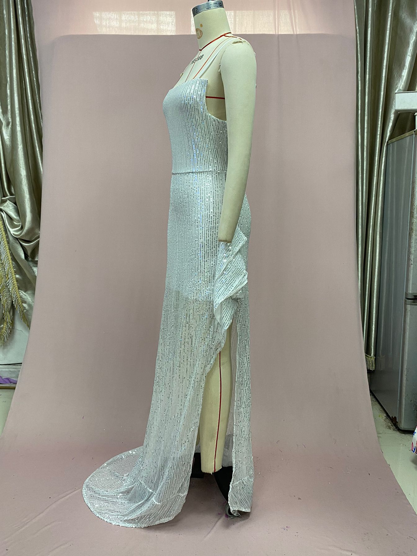 Spring Summer Women Clothing Dress Sexy off the Shoulder Mop Sequined Cocktail Evening Dress