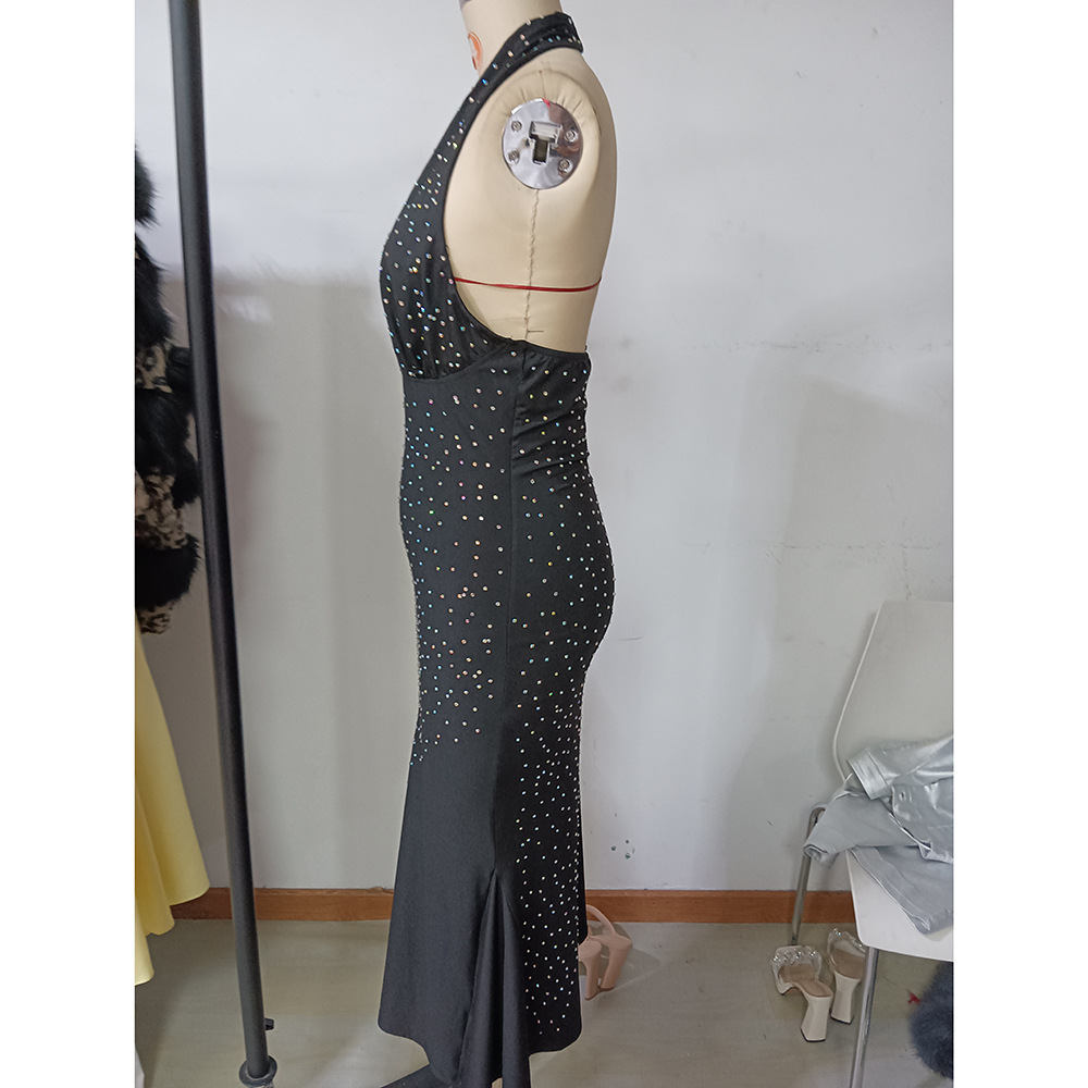 Spring Summer Women Clothing Sexy Dress Halter Deep V Plunge Drilling Party Evening Dress