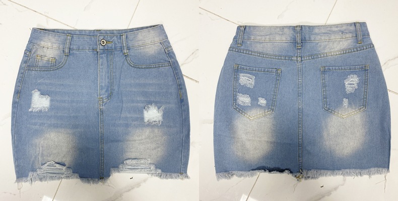 Summer Slim Ripped Denim Skirt Women Light Colored Washed Frayed A line Skirt