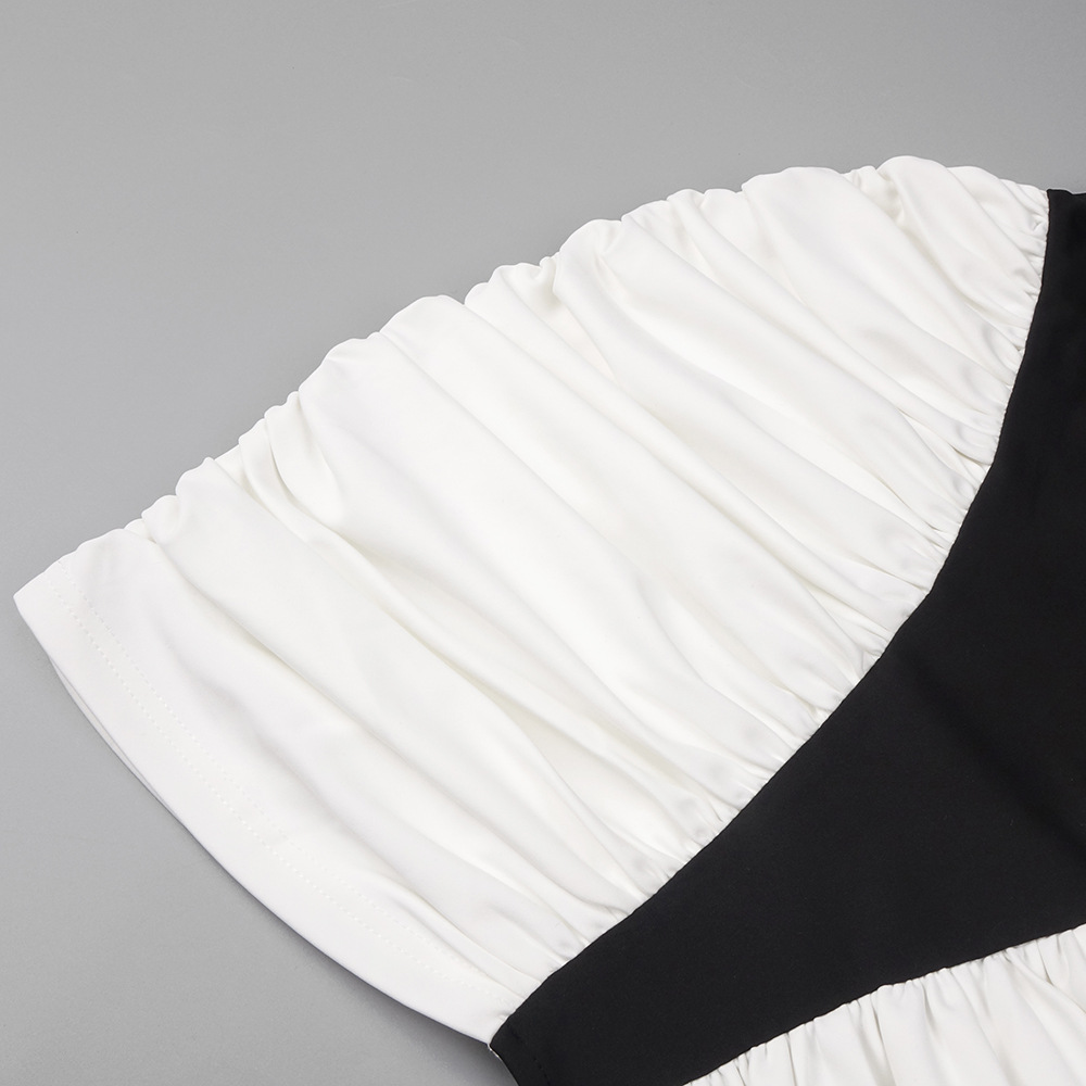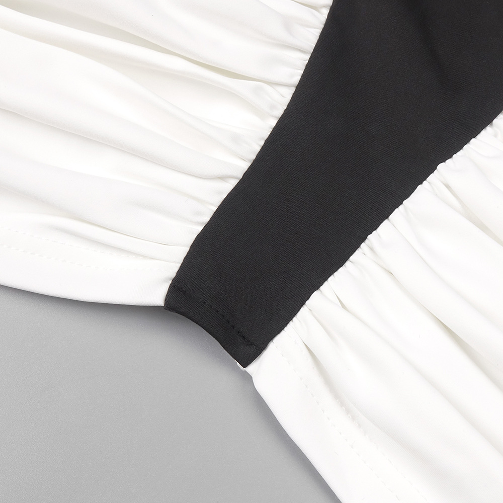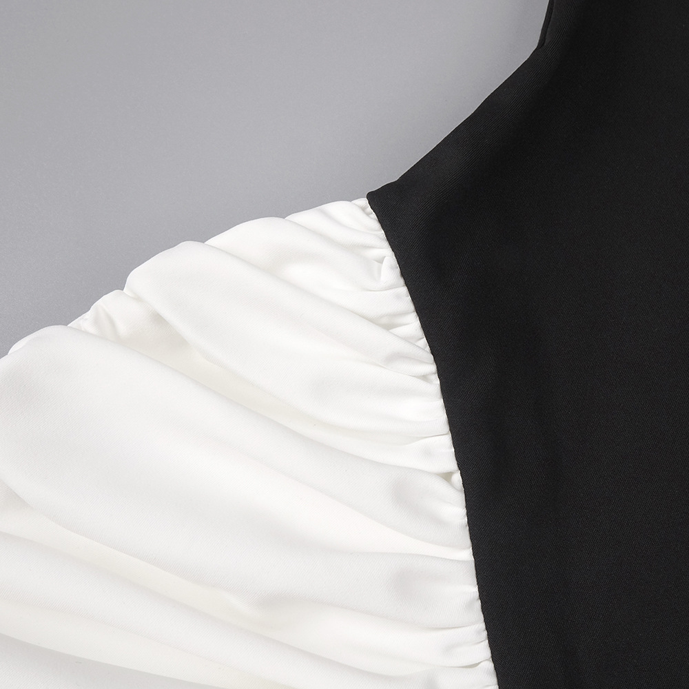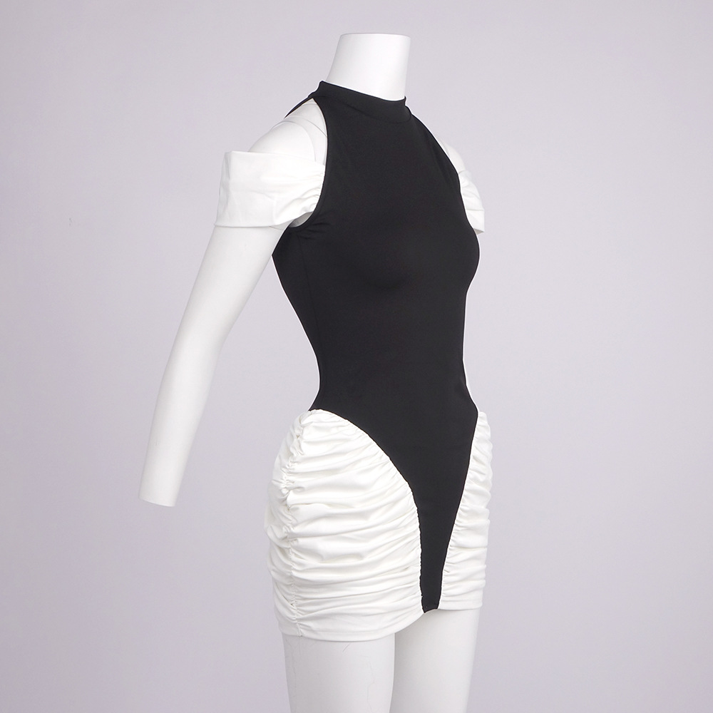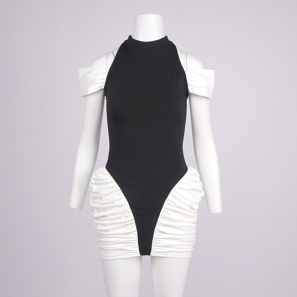 Summer Women Clothing Color Contrast Patchwork Sexy Hourglass Pleated Halter Dress Sleeveless Dress