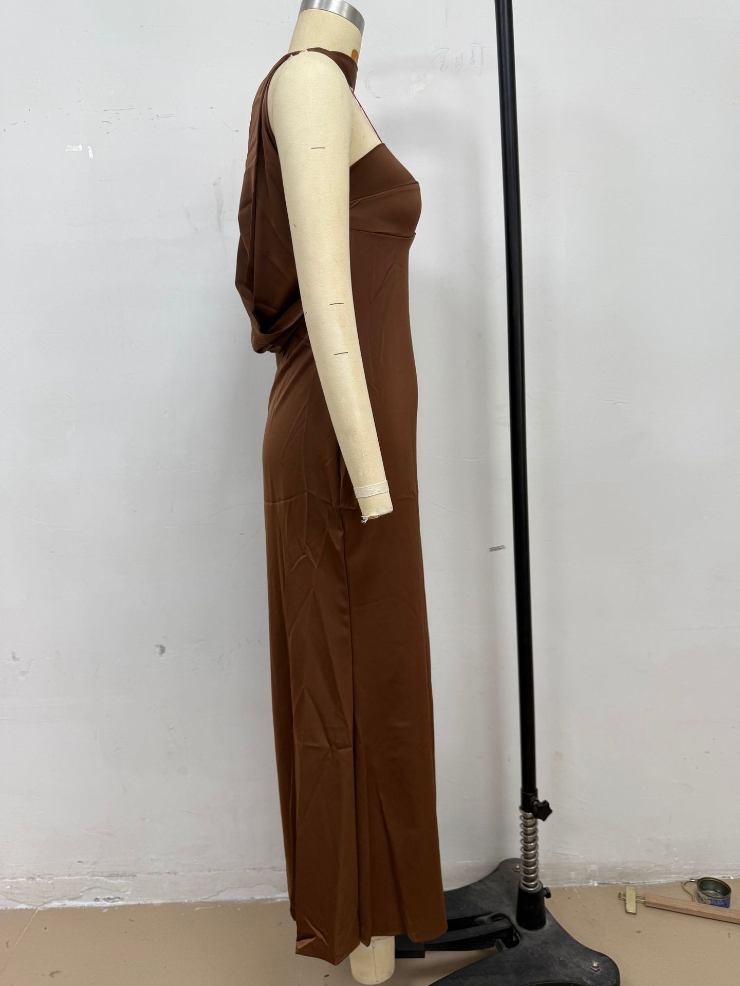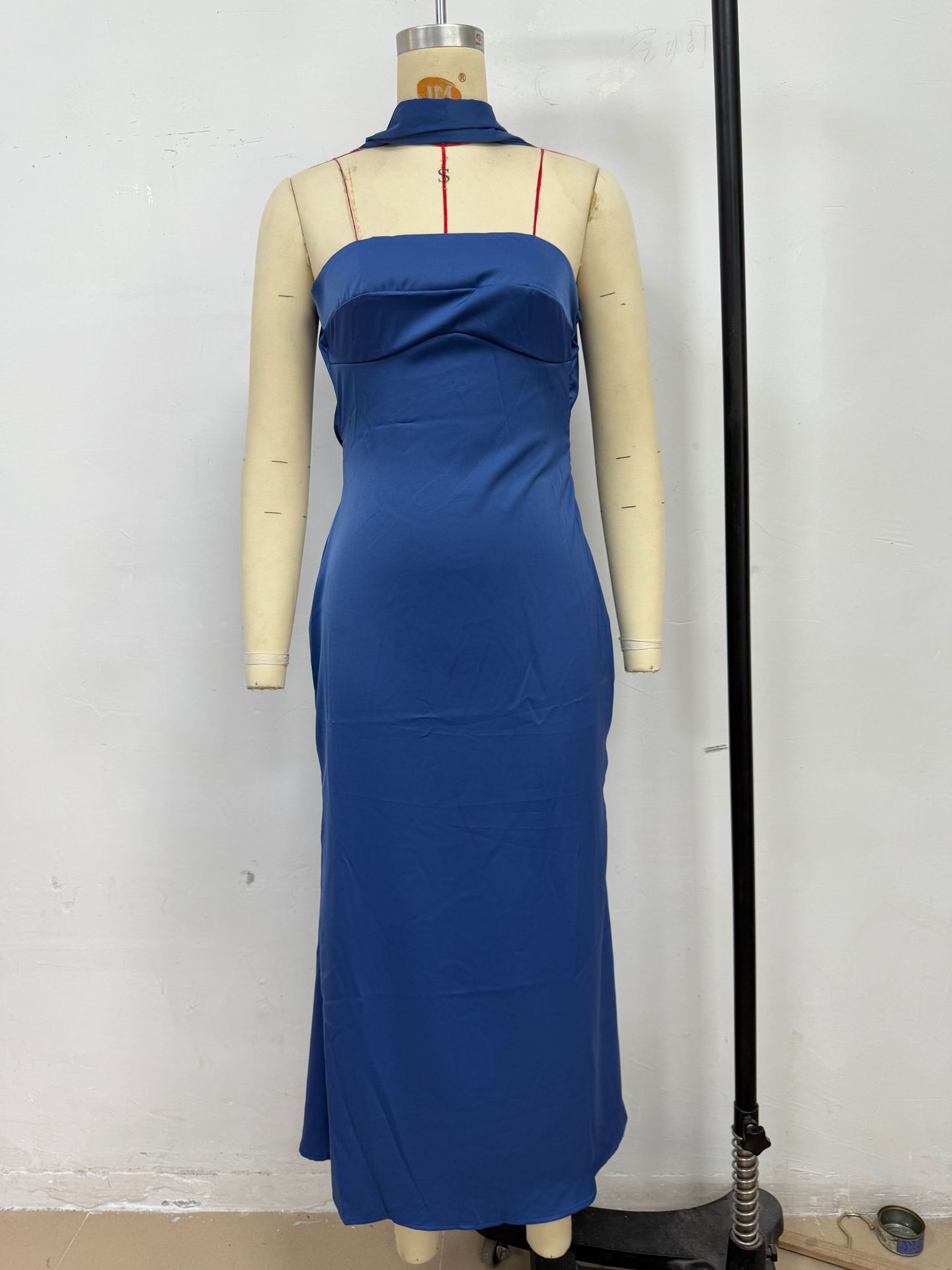 Summer Women Clothing Sexy Halter Satin Mercerized Maxi Dress