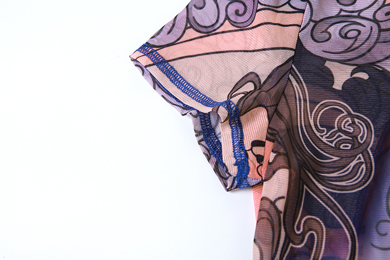 Summer Women Clothing Sexy See through Mesh Floral Print Hollow Out Cutout Backless Tight Casual Jumpsuit