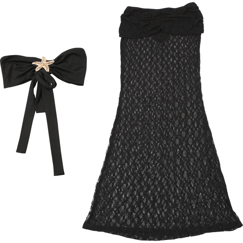 Summer Women Clothing Solid Color Sexy Lace up Tube Top Lace Maxi Skirt Two Piece Set for Women