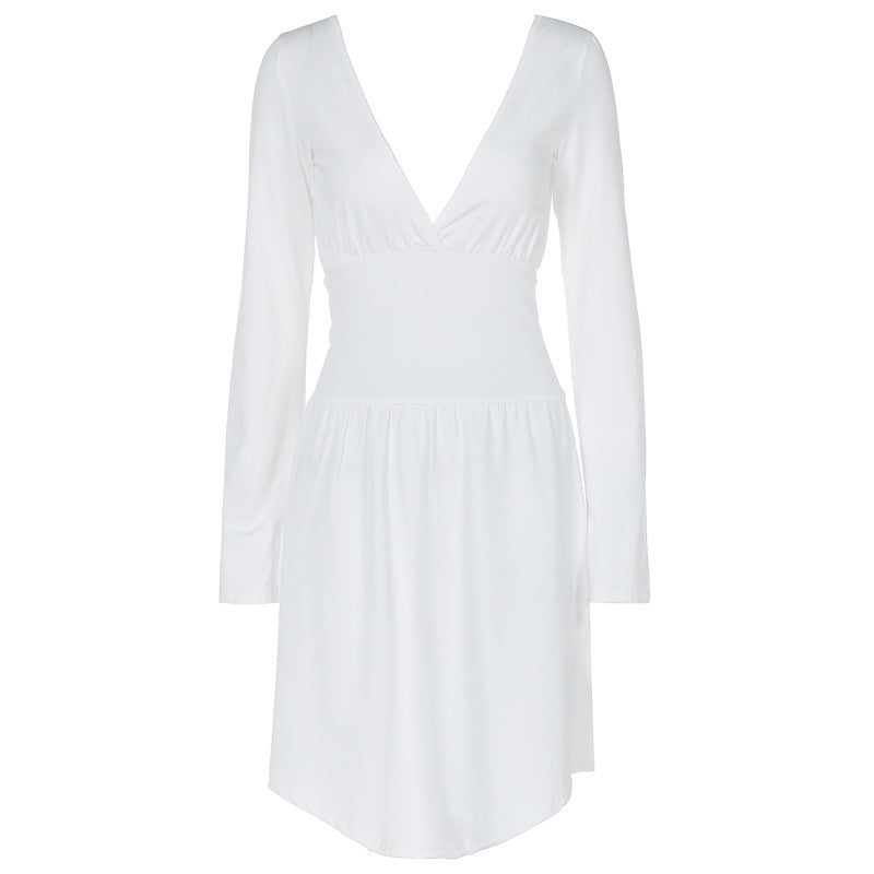 Women Clothing Autumn Sexy Backless Waist Trimming French V neck Long Sleeve Dress Sexy Sheath