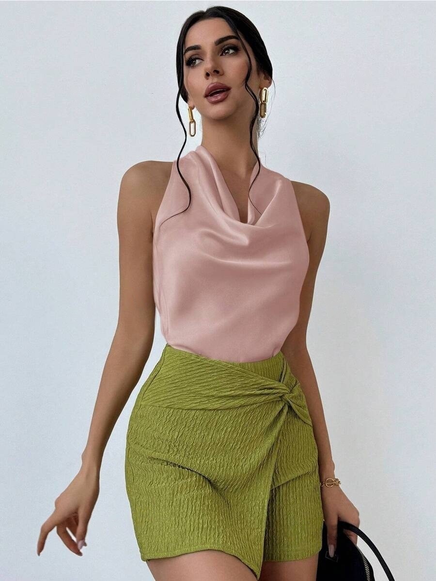 Women Clothing Sexy Sleeveless Satin Shirt Spring Autumn Work Women Shirt