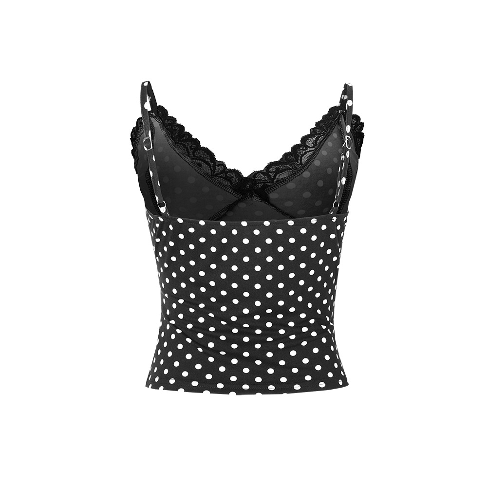 Women Clothing Summer Sexy V Collar Polka Dot Printed Camisole Top