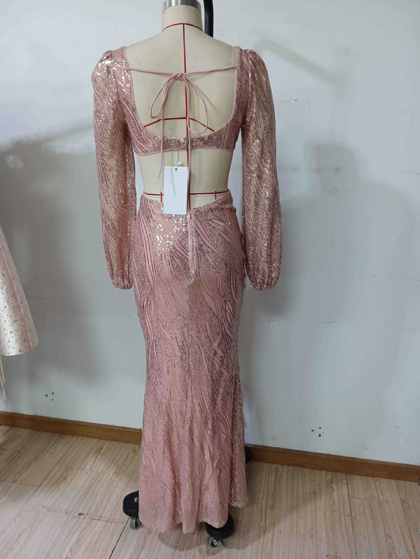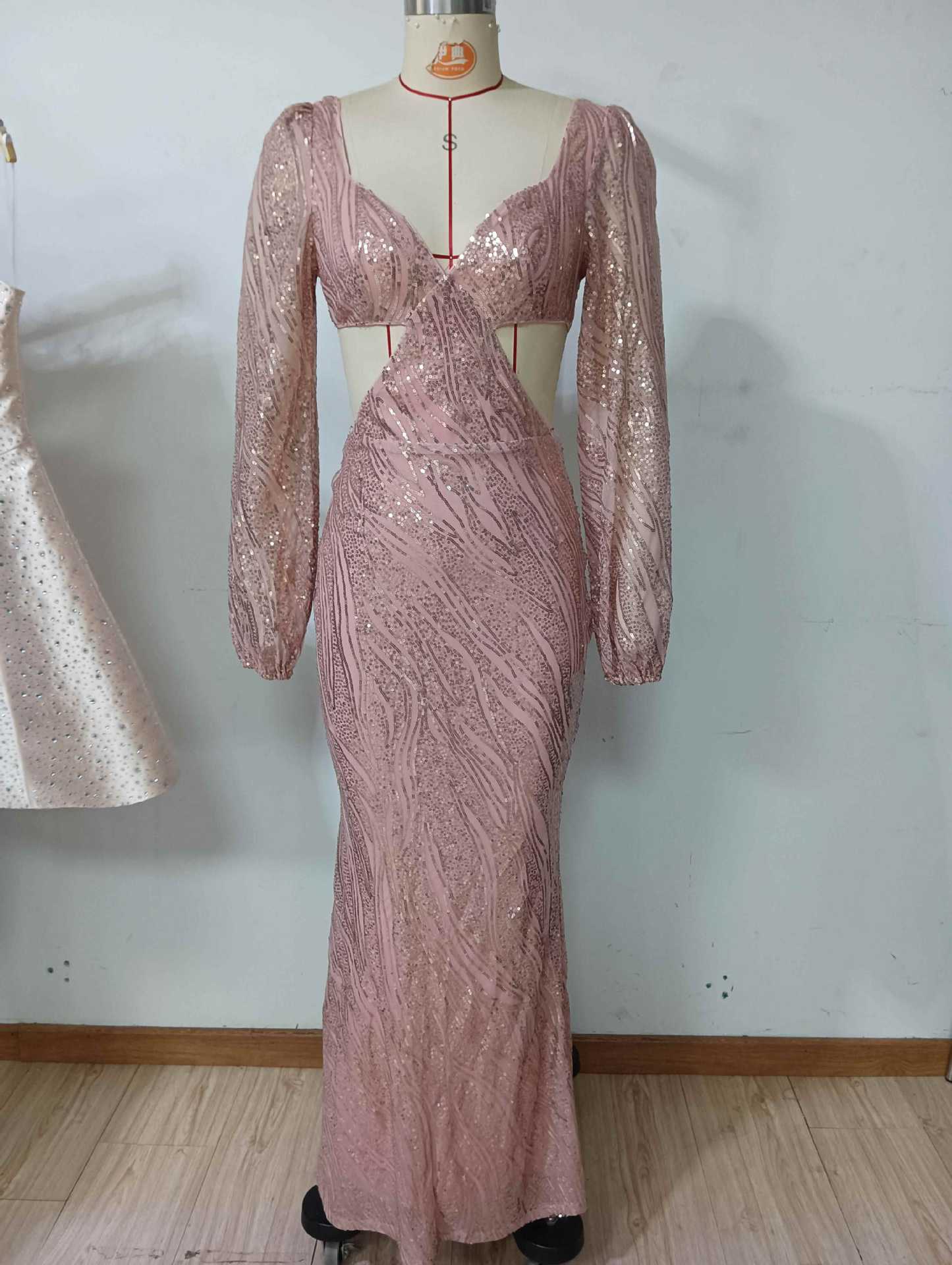 Women Evening Dresses Long Sleeve Beauty V neck Sexy Backless Dress Long Sequined Women Clothing Dress