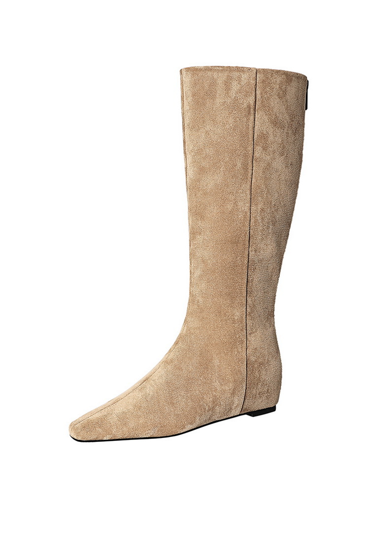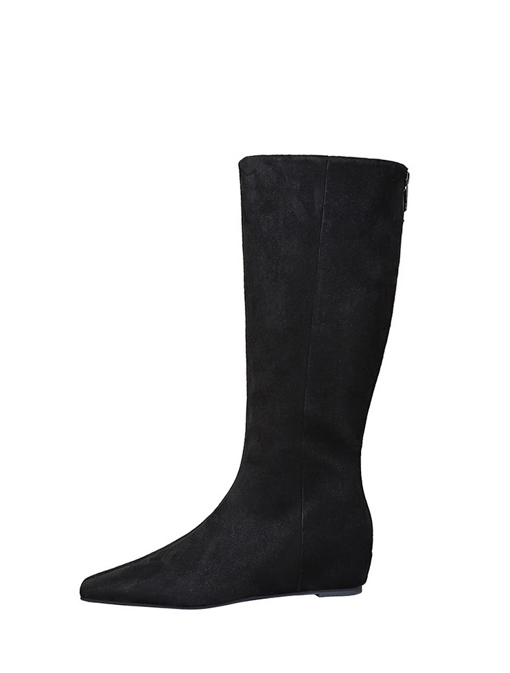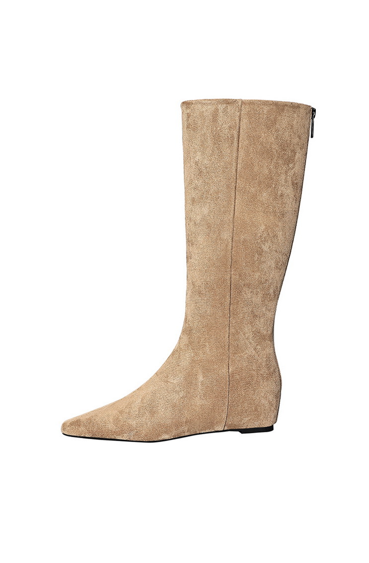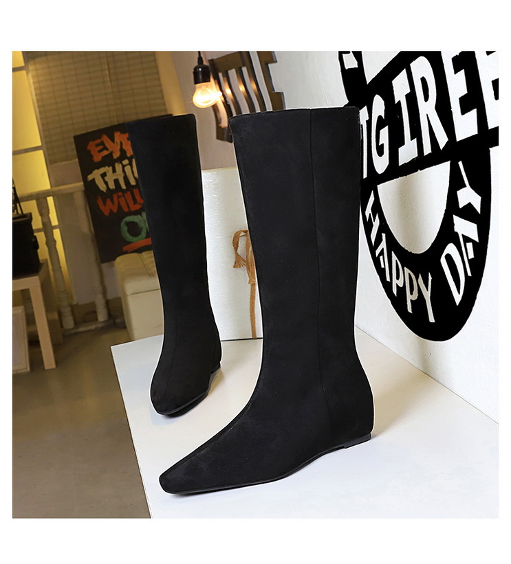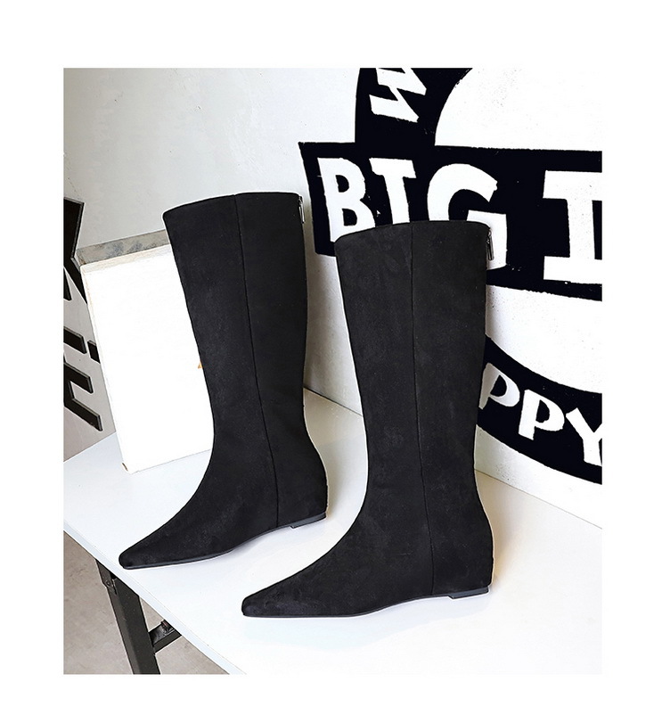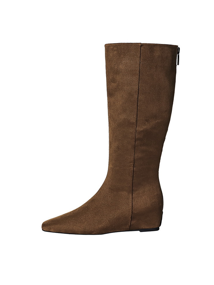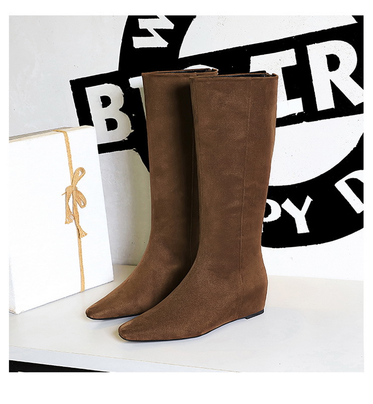 Women Over The Knee Boots Simple All-Match Middle Heel Wedge Height Increasing ole Suede High Leg Boot