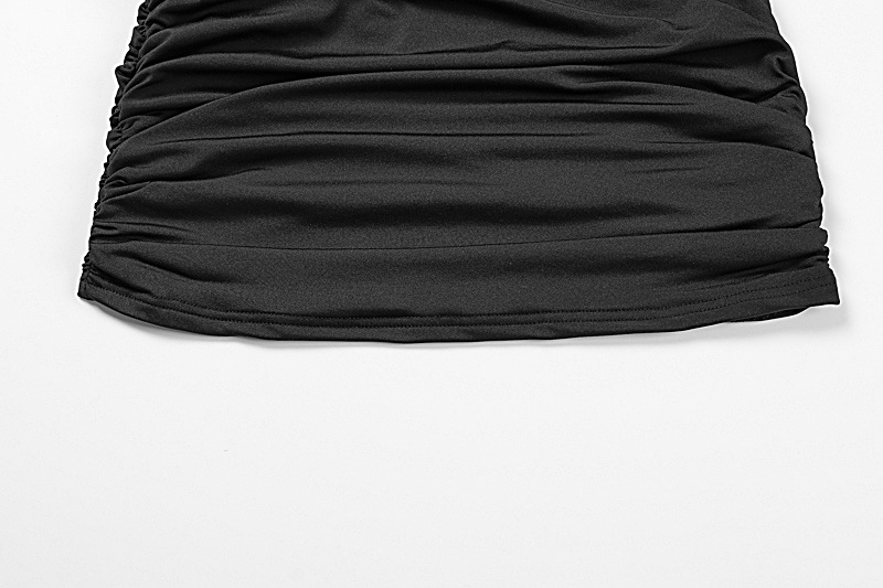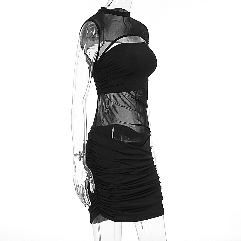 Women Stitching Sexy See through Shoulder Sleeveless Pleated Hip Dress