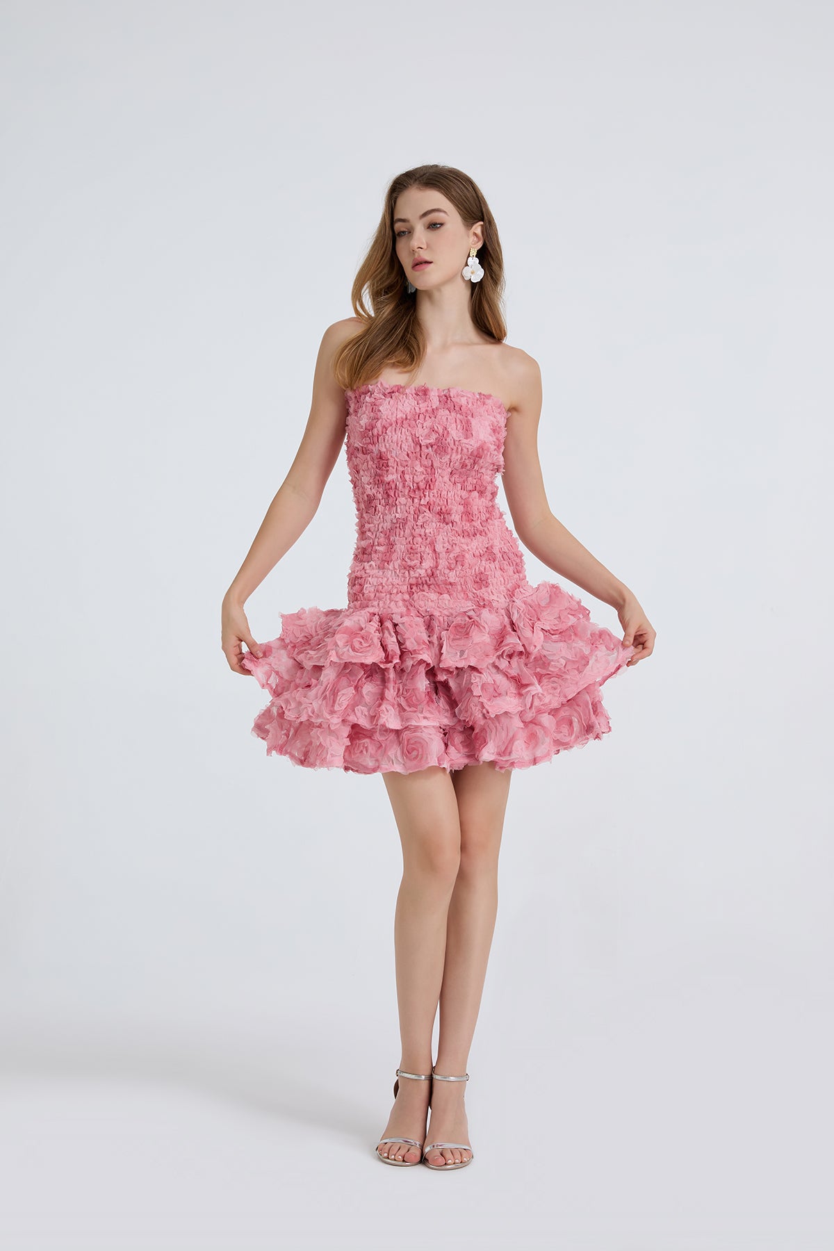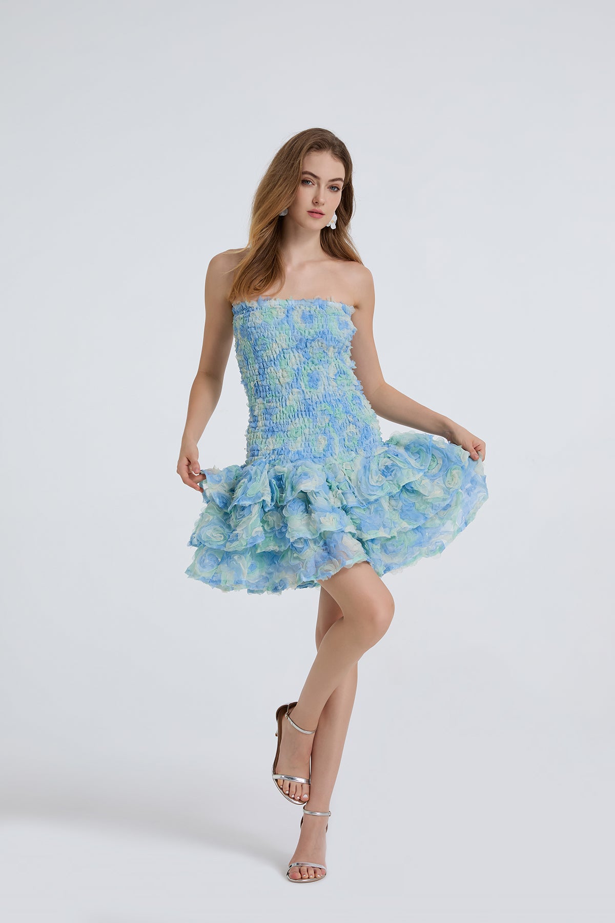 Women Summer Slimming Fit Ruffled Sleeveless Short Dress