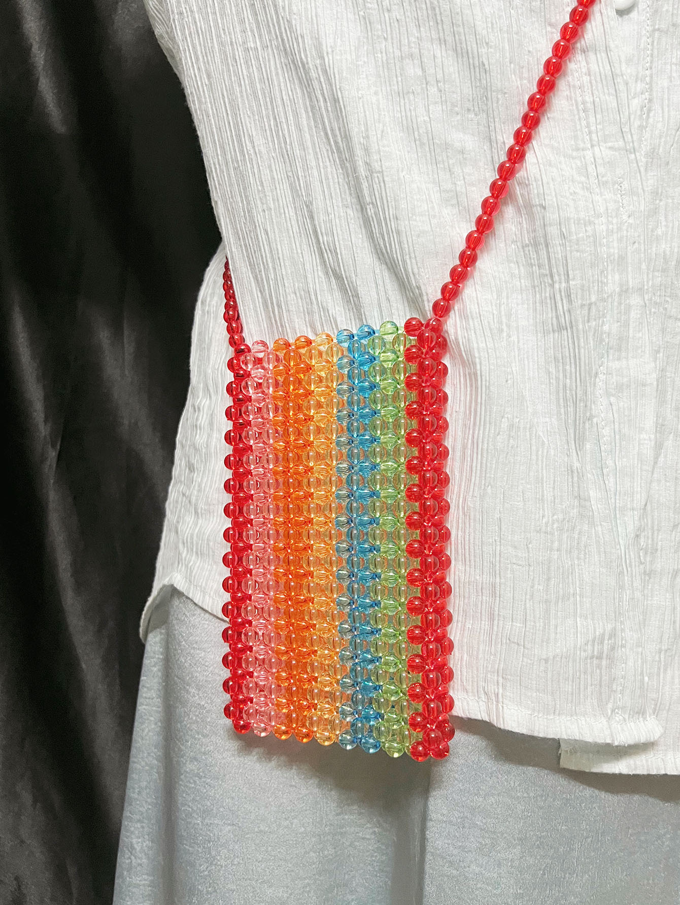 Acrylic Handmade Beaded Weave Bag Simple Dopamine Color Crossbody Bag Women