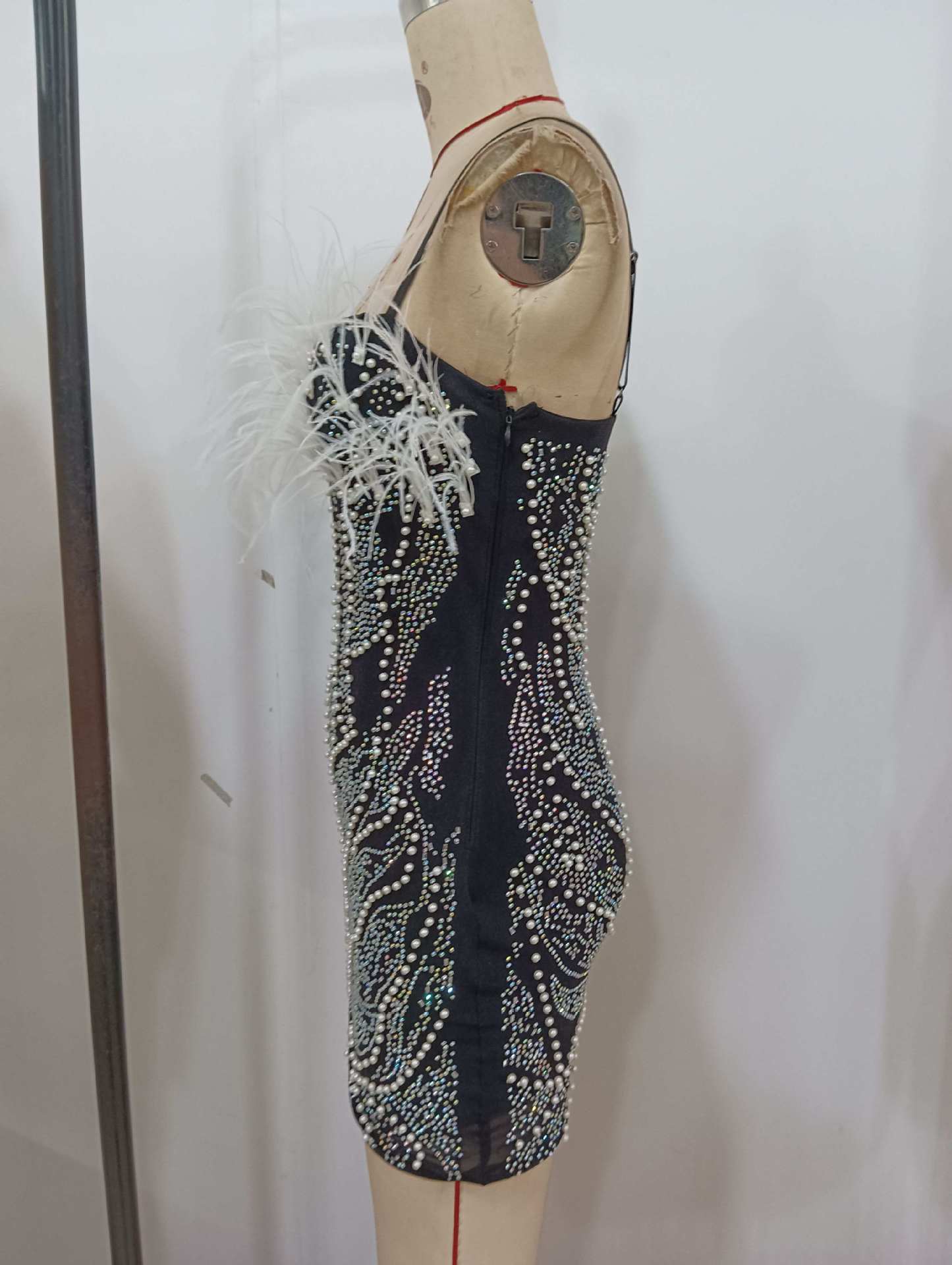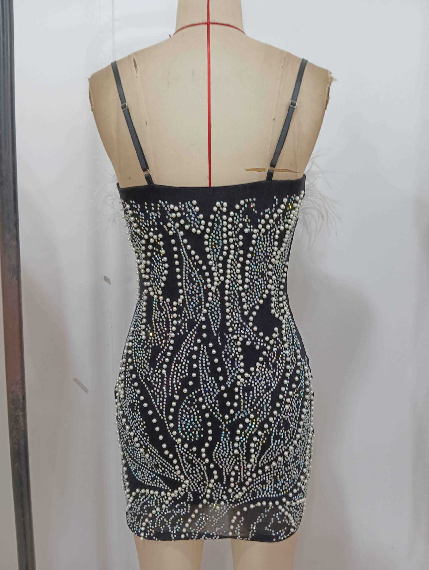 Arrival Sexy Sling Party Dress Pearl Water Beads Deep V Plunge Dress Backless Women Dress